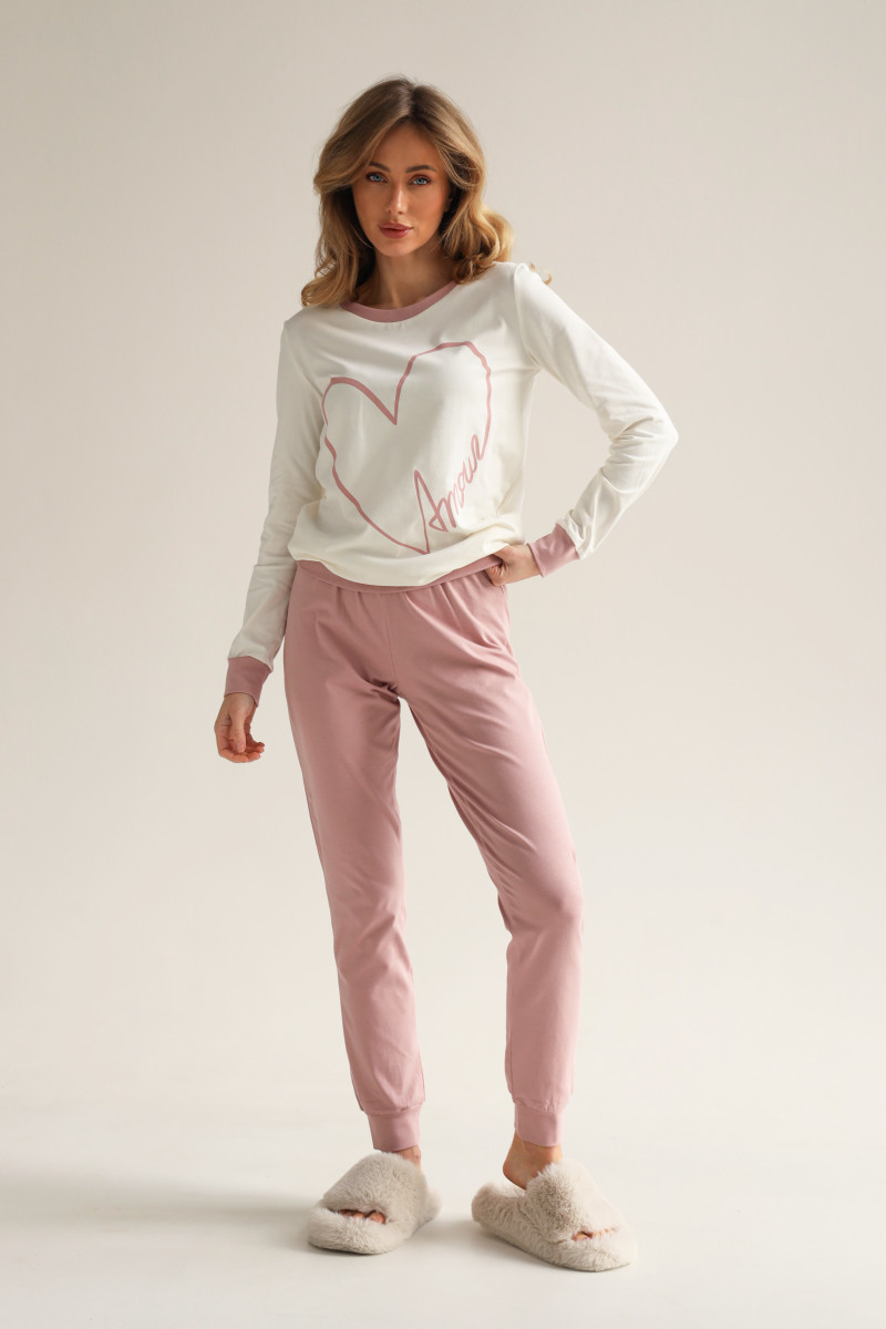 Жіноча піжама AMOUR лонгслів і штани, колір рожевий