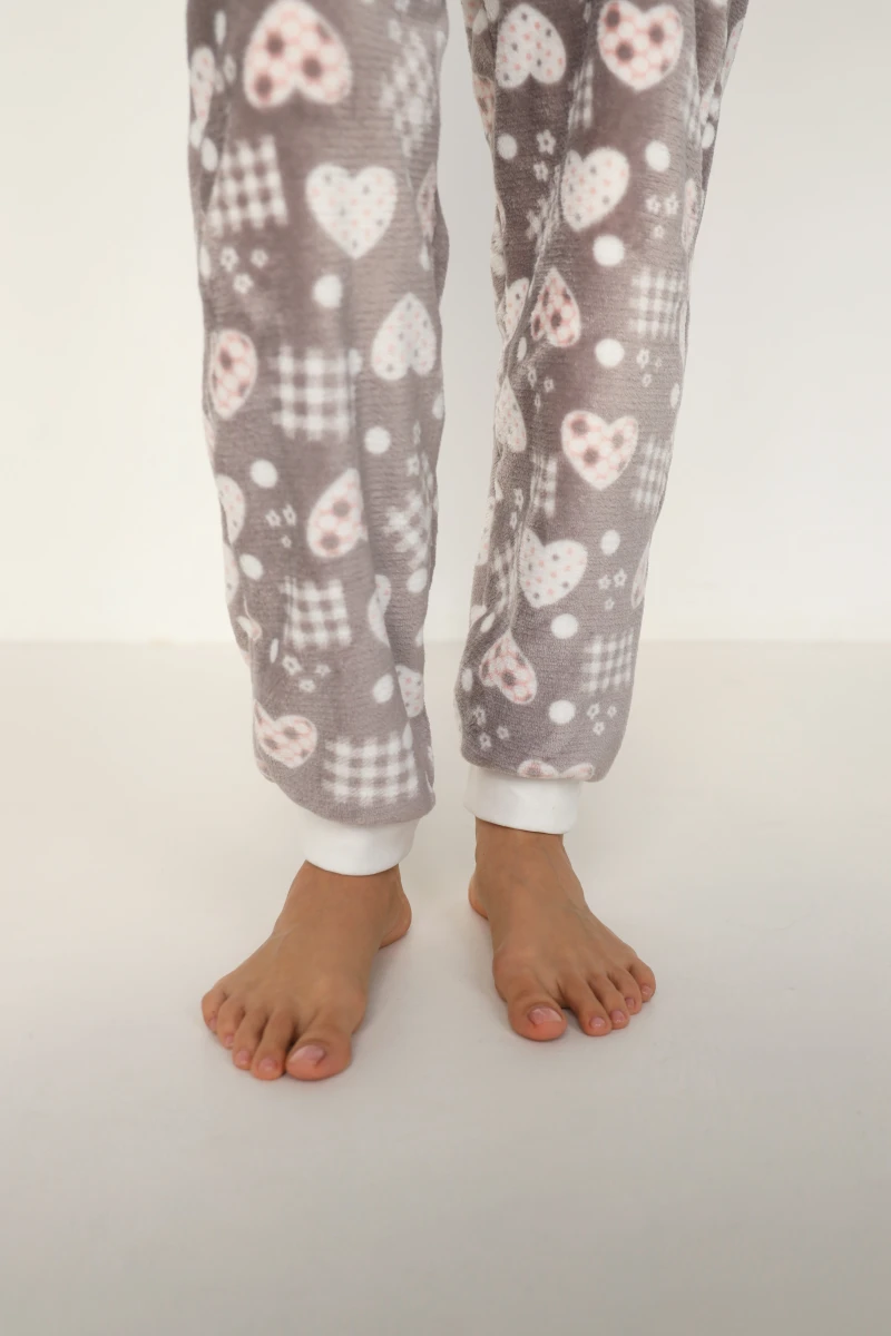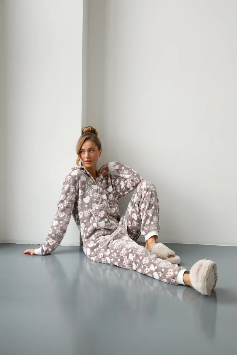 Комбінезон жіночий велсофт, колір бежевий з принтом