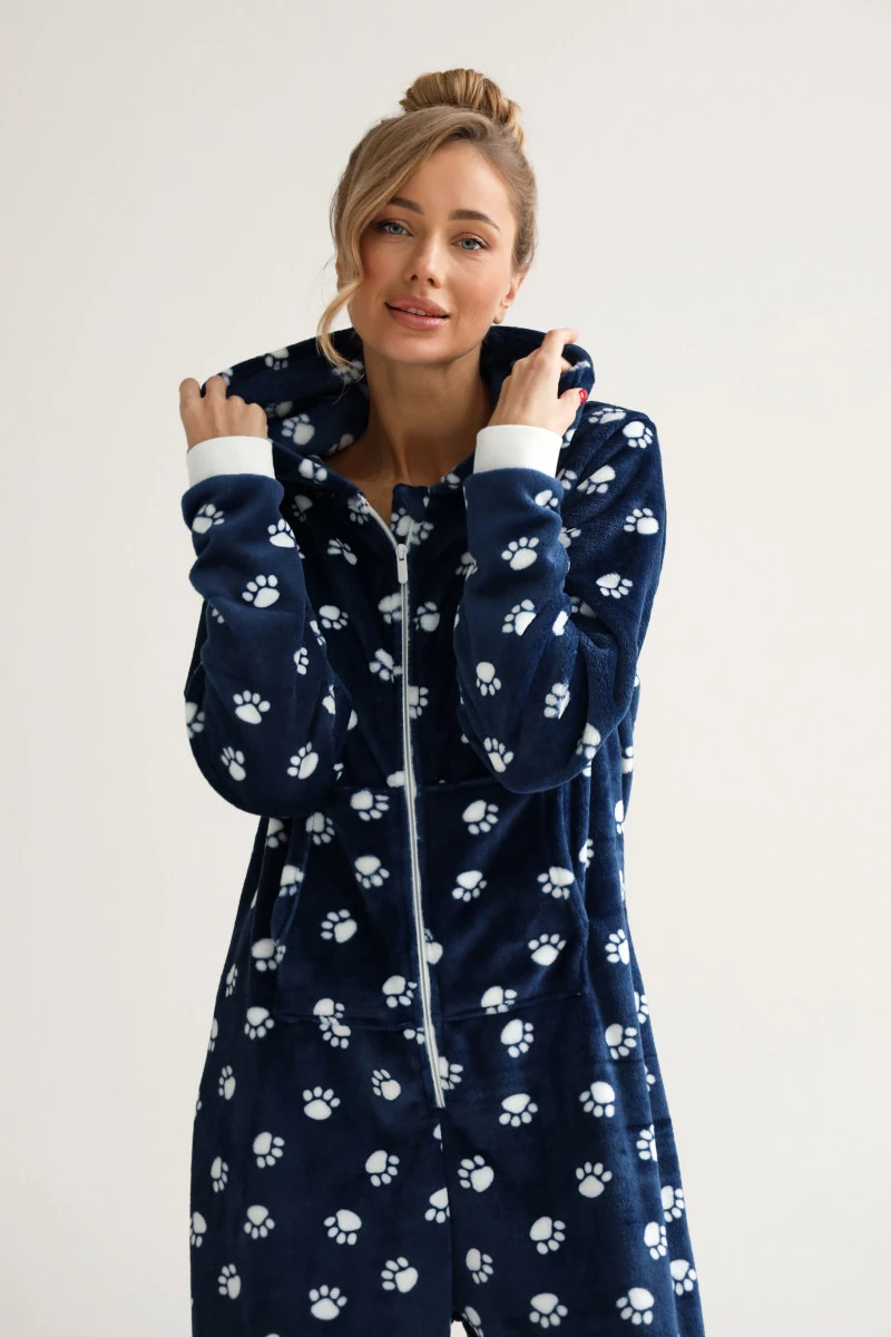 Комбінезон жіночий велсофт колір синій, принт лапка