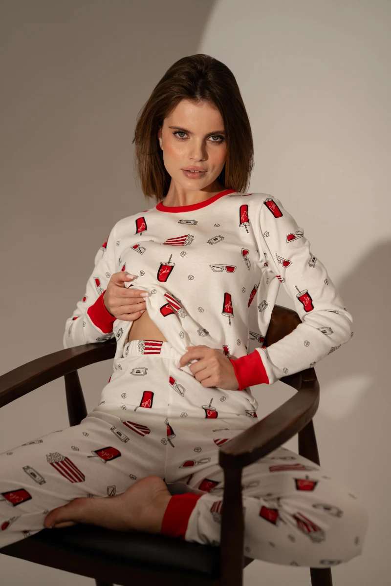 Піжама Cinema зі 100% бавовни – це поєднання затишку, стилю та настрою вечірнього кіно будинку. Виготовлена з м'якого трикотажу, дарує комфорт, тепло та свободу руху.