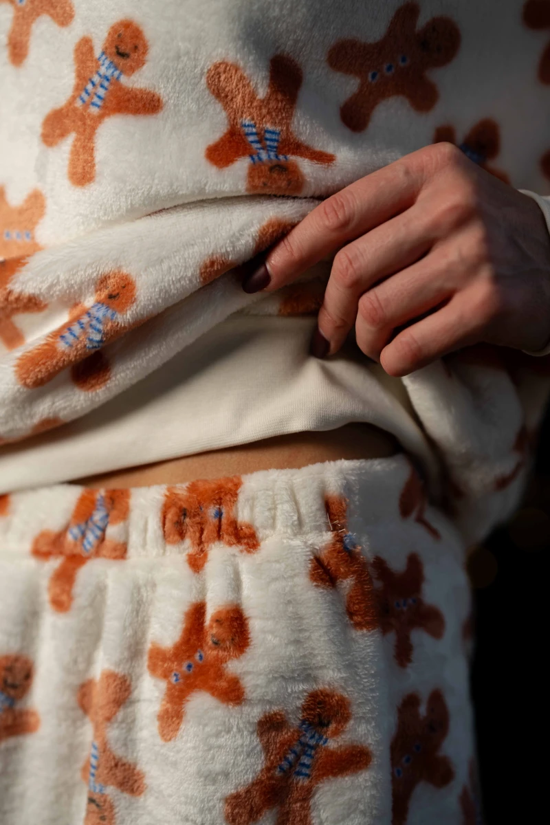 Піжамний костюм із теплого велсофту з новорічним принтом пряник Gingerbread