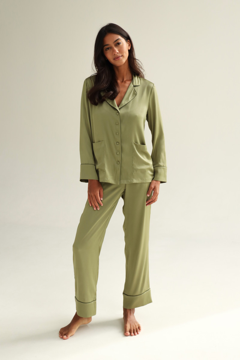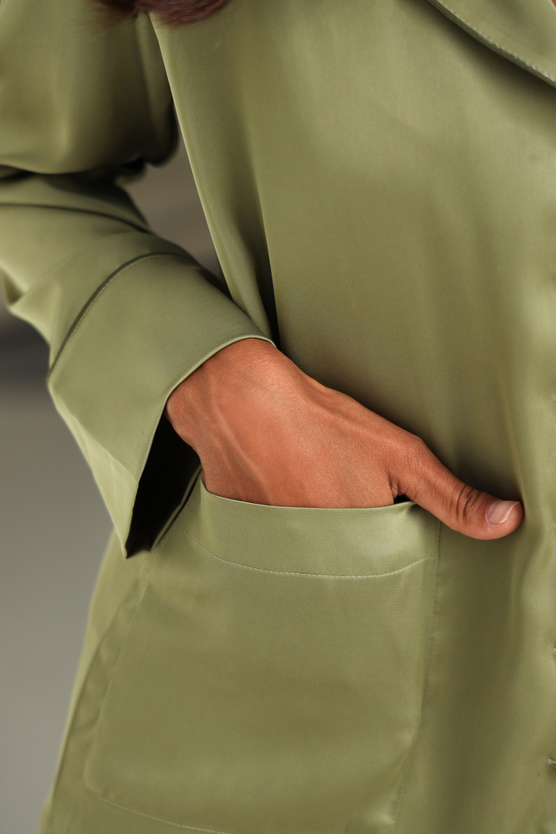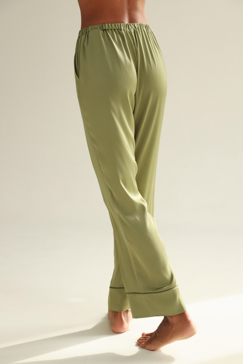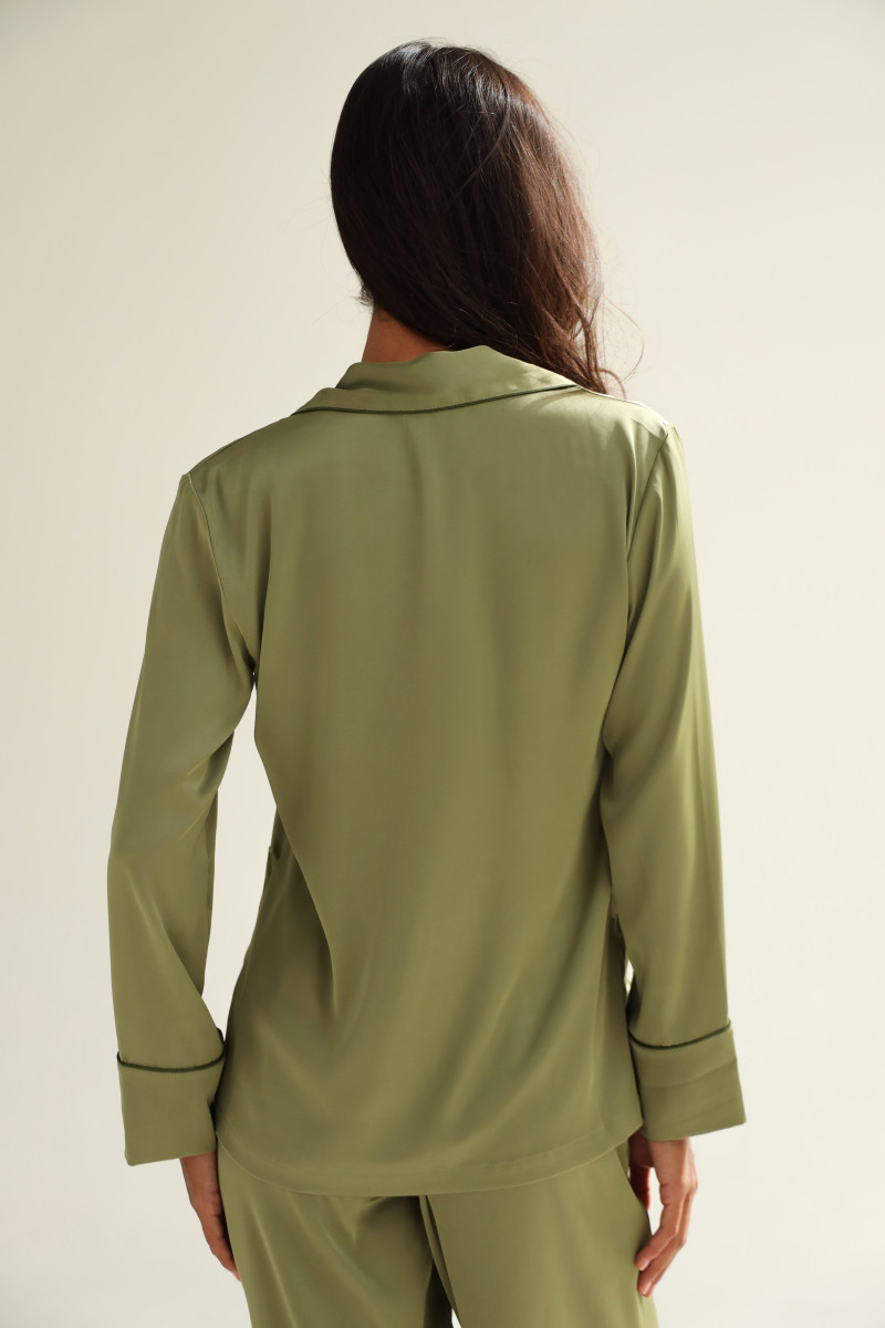 Піжамний костюм шовковий однотонний, кофта та штани, оливковий