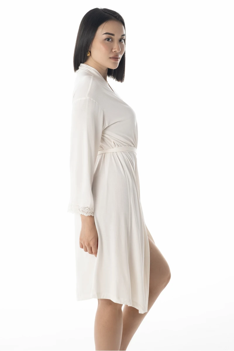 Тип тканини Трикотаж модал Склад тканини 95% модал 5% еластан Колір Молочний Опис Жіночий халат із модала з мереживом у ніжному молочному кольорі – це втілення елегантності та ...