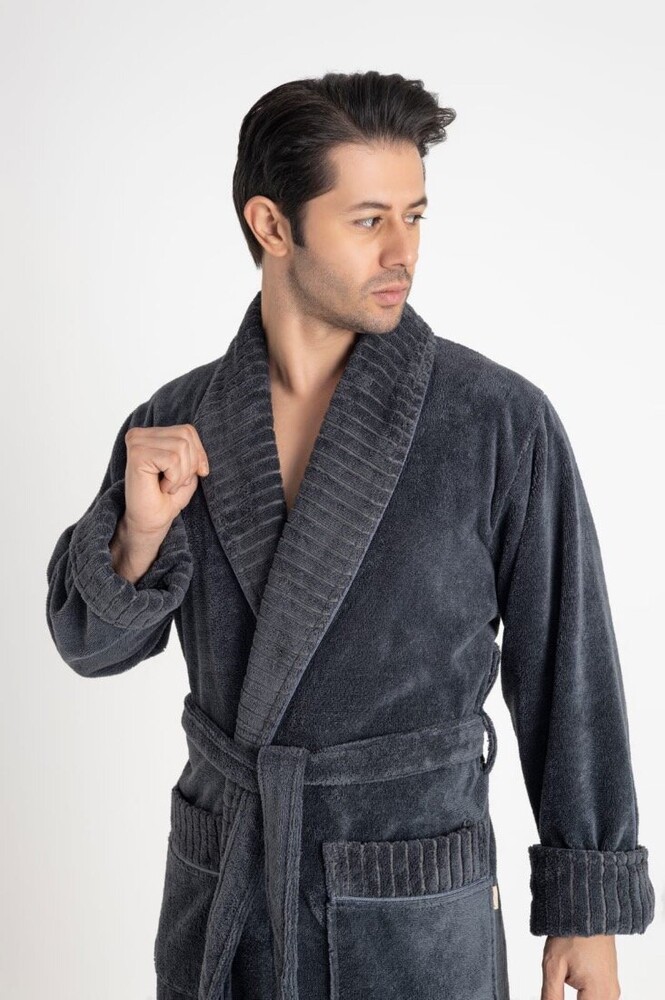 Чоловічий довгий махровий халат Nusa 1330 antracite L/XL