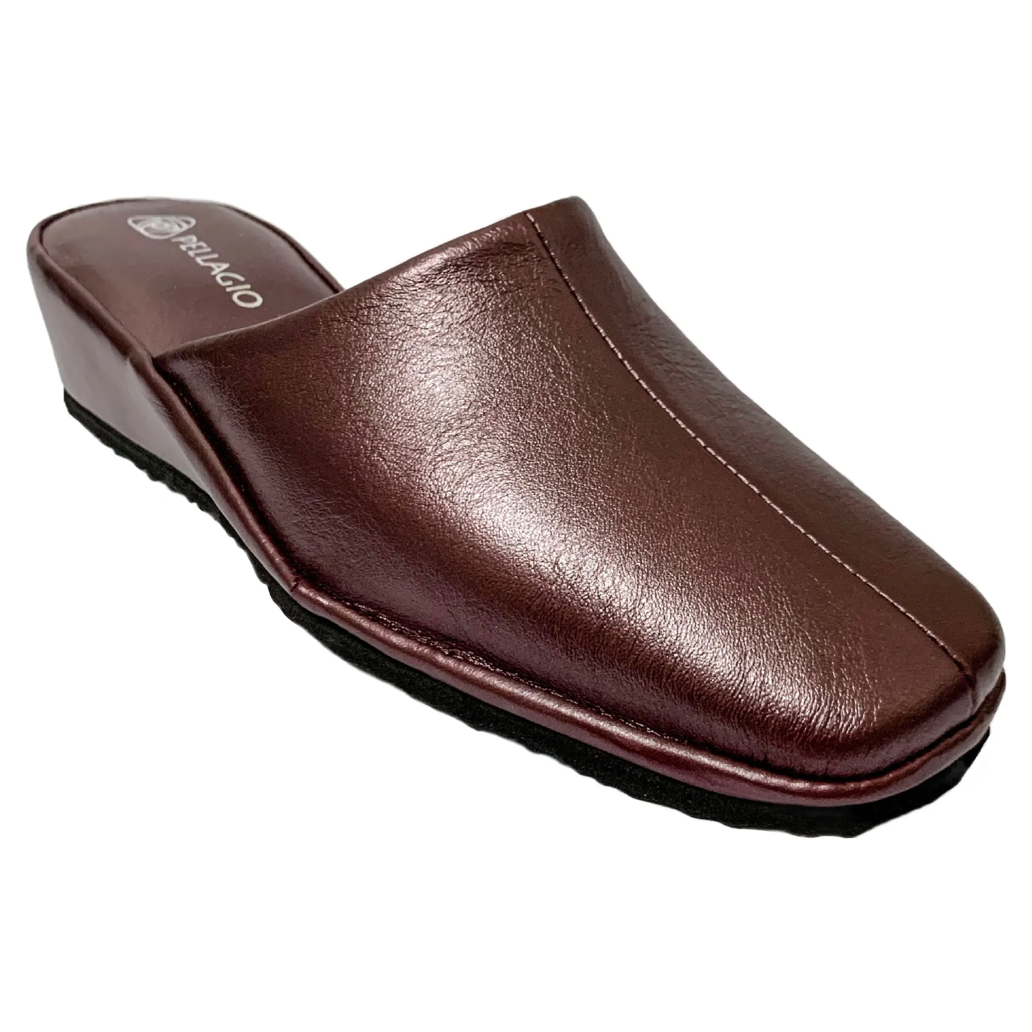 Елегантні домашні закриті капці на зручній стійкій танкетці бордового кольору. У цій моделі підібрана оптимальна висота танкетки, в якій ногам комфортно протягом усього дня, в той же час вона робить капці вишуканими і їх можна носити, як вдома так і на роботі. Для більшої практичності підошву зробили із EVA, завдяки якій Ви зможете вийти на відкриту терасу.