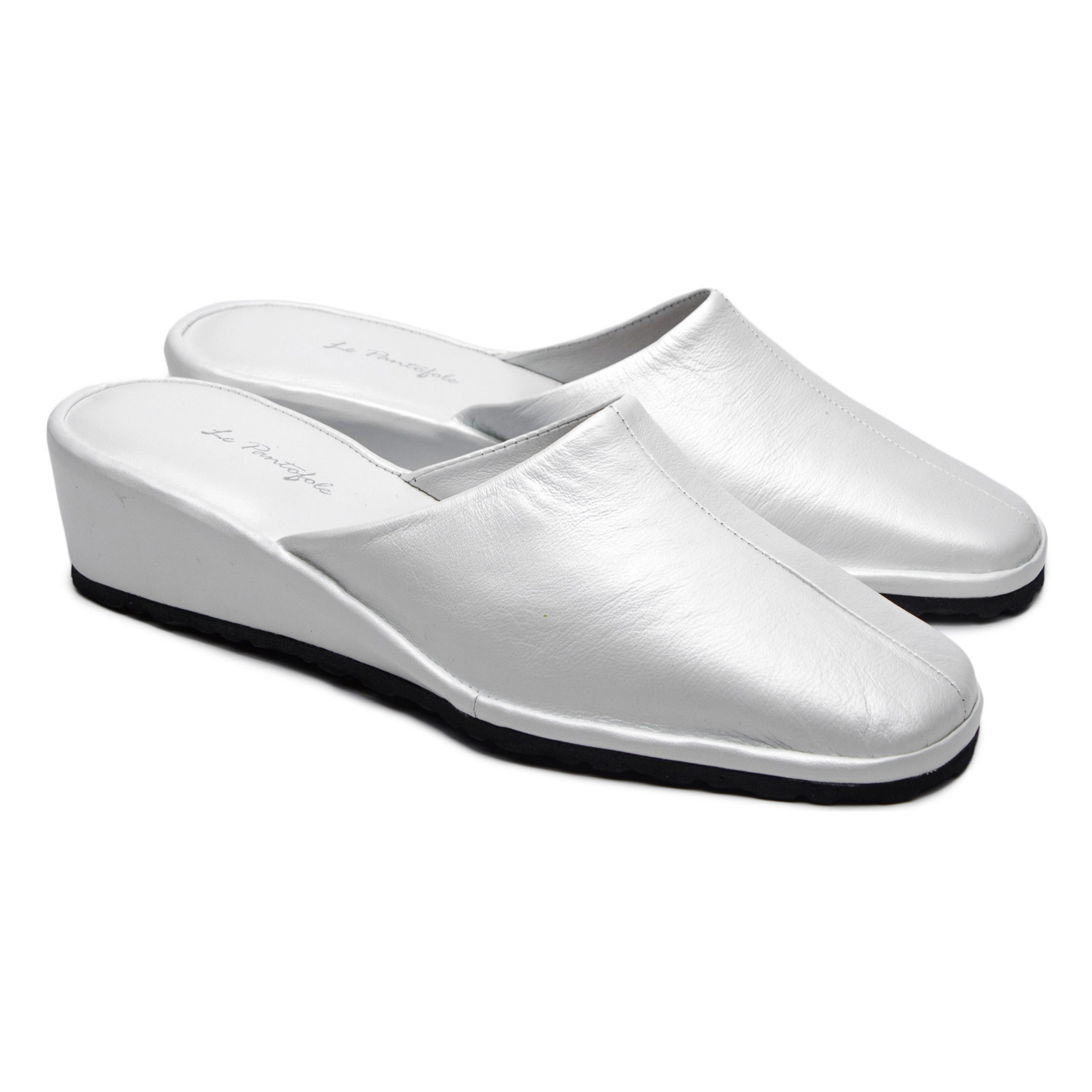 Елегантні домашні закриті тапочки на зручній стійкій танкетці перламутрового кольору. У цій моделі підібрана оптимальна висота танкетки, в якій ногам комфортно протягом усього дня, в той же час вона робить капці вишуканими і їх можна носити, як вдома так і на роботі. Для більшої практичності підошву зробили із EVA, завдяки якій Ви зможете вийти на відкриту терасу