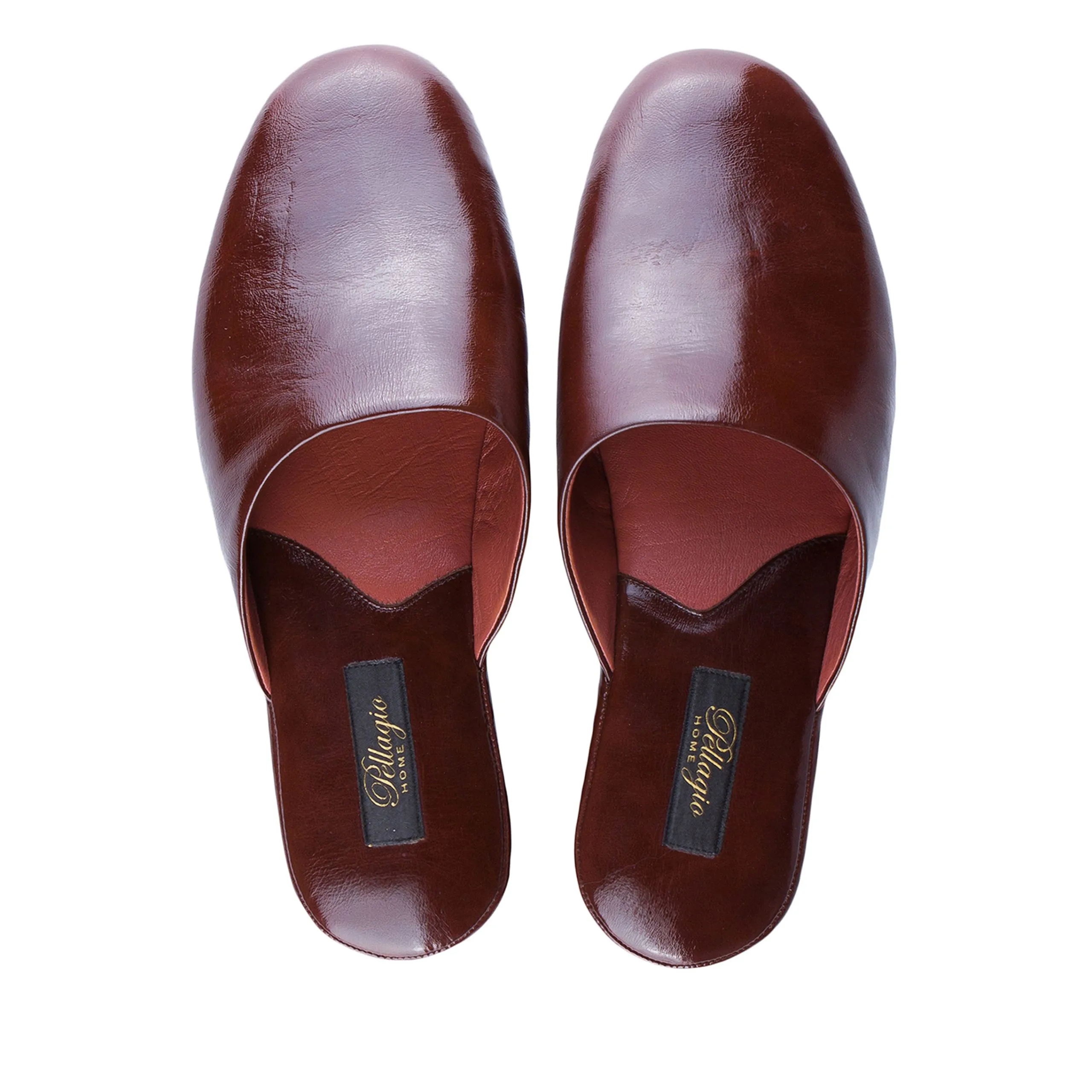 Домашні капці без задника виконані з коричневої м’якої та гладкої шкіри з глянцевим блиском. Анатомічна форма допомагає стопі залишатися в природньому положенні, а гнучка підошва з міцної замші не ковзає на гладких поверхнях і забезпечує ногам комфорт, не обтяжуючи взуття.БРЕНД ДОВЖИНА СТОПИ (ДЛИНА СТОПЫ) 40 – 26,3 см, 41 – 26,9 см, 42 – 27,5 см, 43 – 28,1 см, 44 – 28,7 см, 45 – 29,3 см