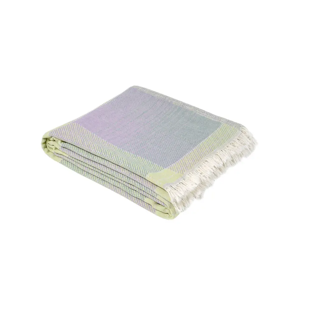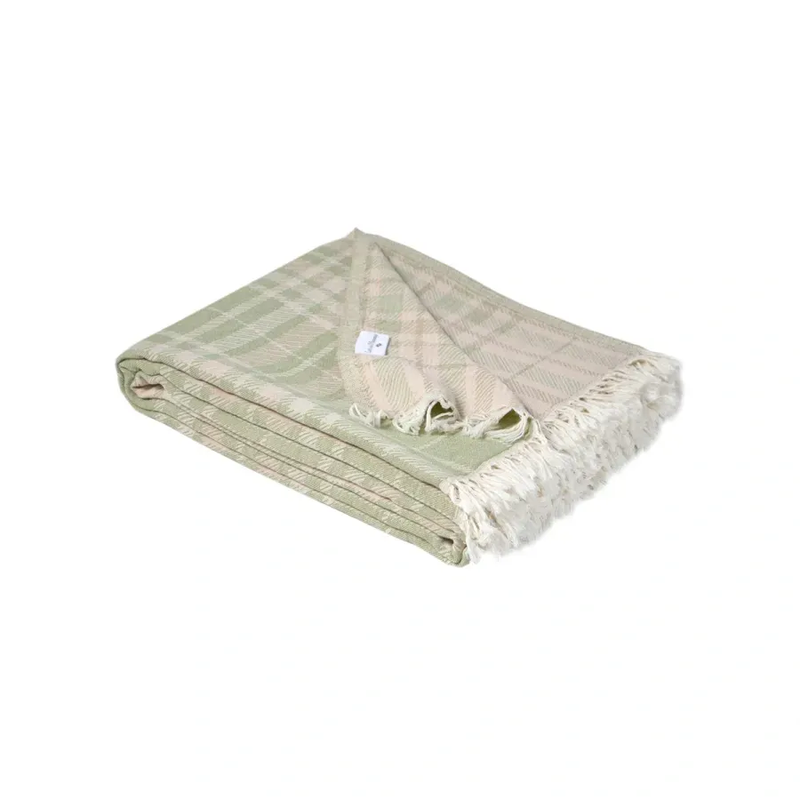 Покривало піке Checked Madras Lotus Home зелений. Стильне доповнення до вашого інтер'єру - легке бавовняне покривало-піке в бузково-салатових відтінках з принтом у клітинку і з бахромою. Покривал...