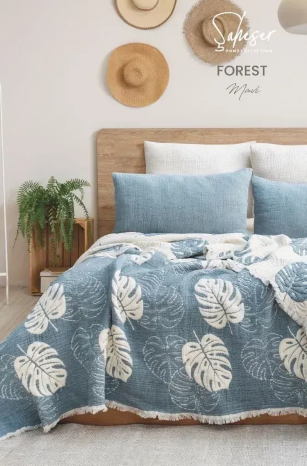 Муслінове покривало Saheser Forest Mavi 240х260 см + 2 наволочки 50х70 см