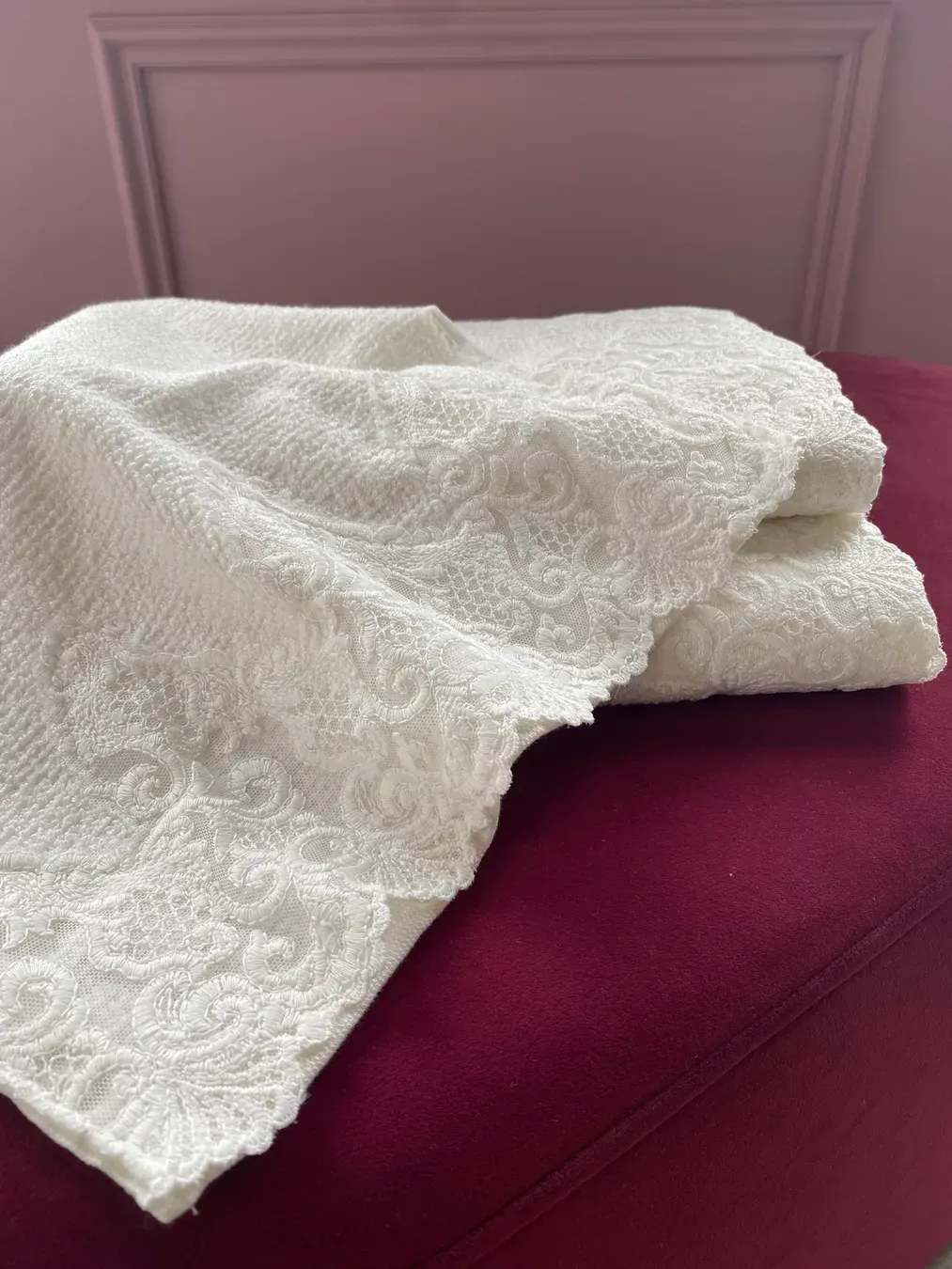 Комплект рушників від турецького бренду Maison d'or. Чудовий варіант як для себе так і на подарунок. Комплект запакований в брендову подарункову коробку. В комплекті три однотонні рушники з мереживом. Мереживо мʼяке та не колеться. Махрова тканина мʼяка та приємна на дотик. Дуже добре впитує воду та швидко сохне зарахунок натурального складу. Після прання не твердіє .