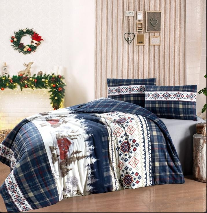 Постільна білизна First Choice Фланель natura navy blue євро