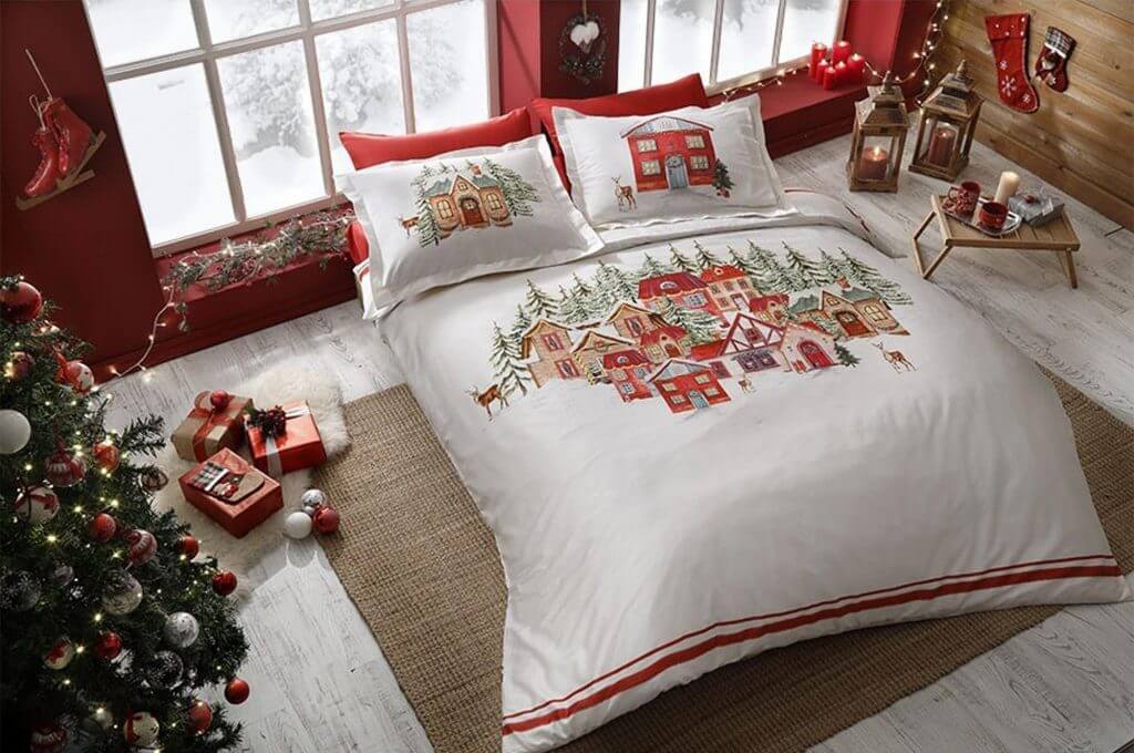 Постільна білизна TAC Santa 200×220 гарний постільний комплект червоного відтінку наповнить ваш відпочинок комфортом та затишком. Тканина: Сатин (100% бавовна)