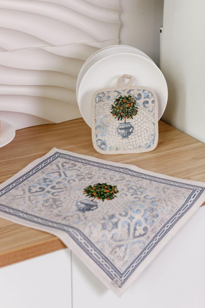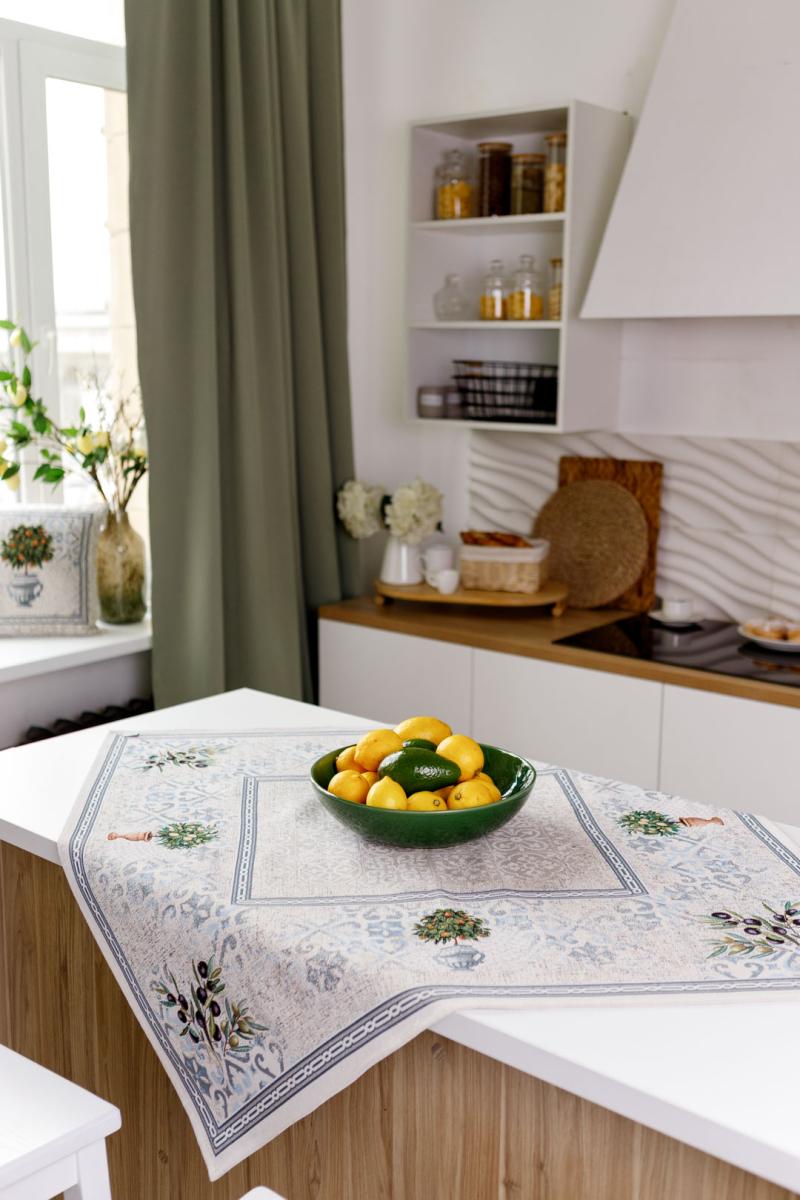 Скатертина на стіл з високоякісної гобеленової іспанської тканини. Це стильний подарунок сім'ї, друзям, родичам та колегам на будь-яку подію. Також це чудове доповнення до серветок, фартухів, рукавичок, прихваток, доріжок, наволочок та подушок з гобеленової колекції Афіни.