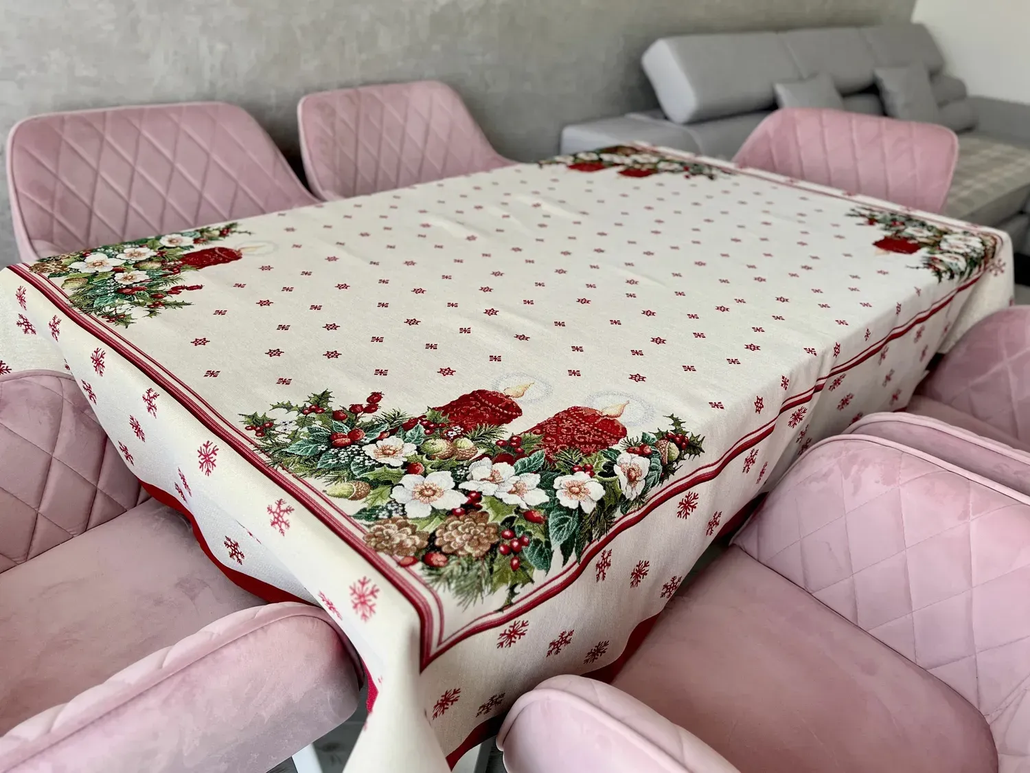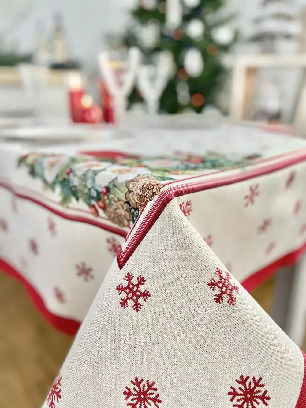 Артикул RUNNER242-137 Розмір 137х137 Форма Квадратна Розділ Скатертини Дизайн Новорічний Вид Срібний люрекс Колір Білий Склад тканини 75% поліестер, 22% бавовна, 3% акрил Гобеленова скатертина створить у Вашій домівці атмосферу свята і затишку у будь-яку пору року. Наші гобеленові вироби відрізняються незмінною якістю та довговічністю, вони не вимагають особливого догляду. Вони практичні у використанні, не втрачають кольору після прання, з них без зусиль відпираються плями і їх легко прасувати.