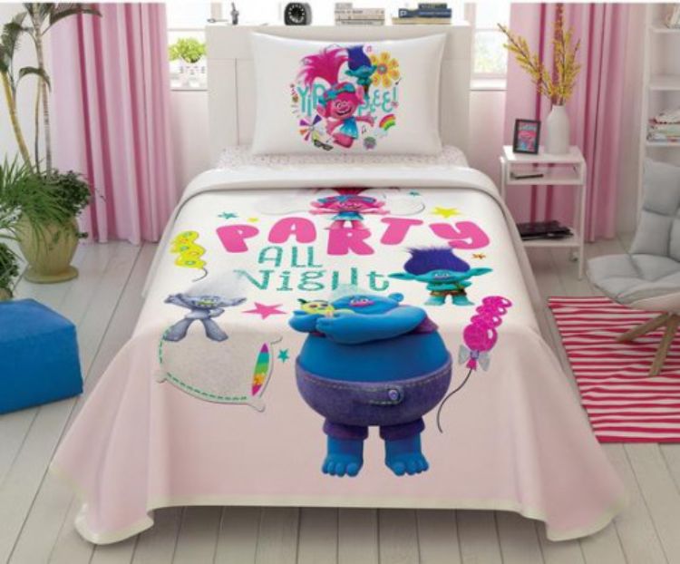 Односпальний комплект з покривалом-піке TAC Trolls / простирадло на резинці