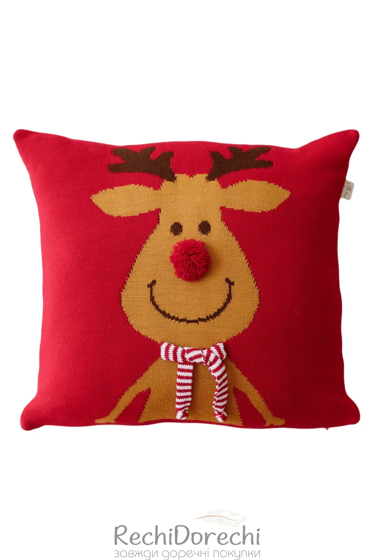 Наволочка декоративна в'язана Олень з шарфом 45х45см