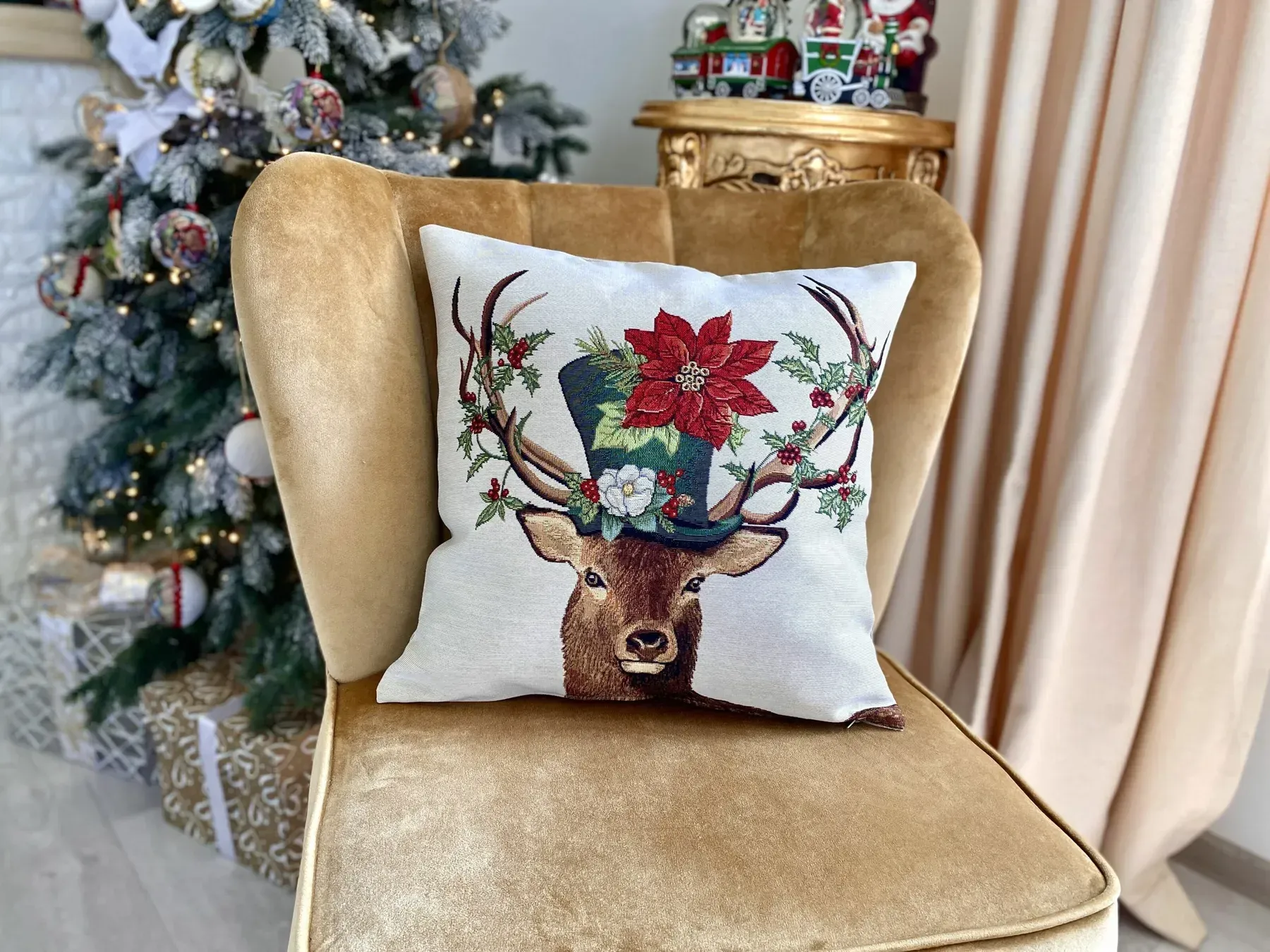 Артикул DEER HAT-NV Розмір 45x45 Форма Квадратна Розділ Декоративні наволочки та подушки Дизайн Новорічний Вид Без люрексу Колір Бежевий Склад тканини 60% поліестер, 24% бавовна, 16% акрил
