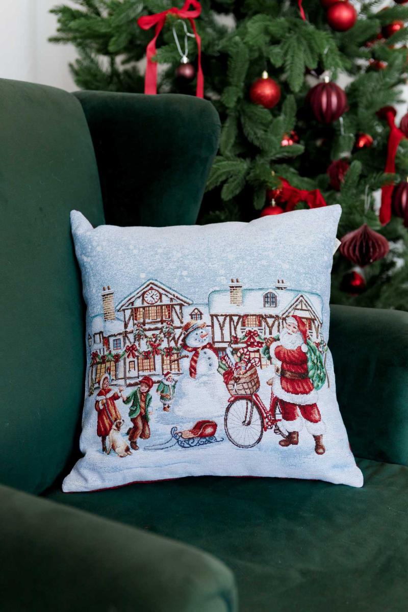 - Новорічна декоративна подушка Carousel Святкування Декоративна подушка з іспанської тканини відмінної якості. Подушка на блискавці. З одного боку гобелен, з іншого боку бавовняна тканина.