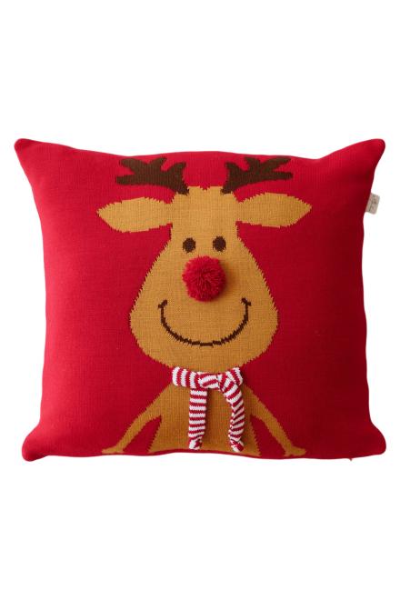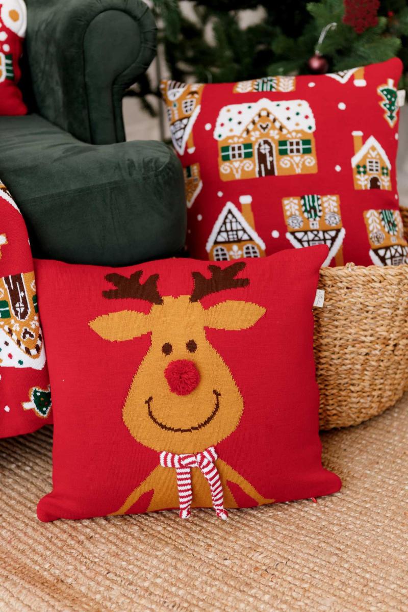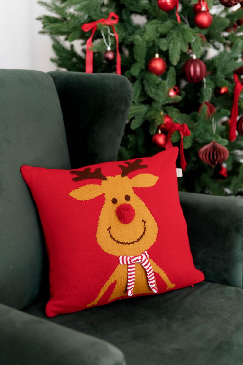Декоративна подушка новорічна Олень з шарфом Яскрава, ошатна подушка з новорічним принтом стане чудовим новорічним декором, а також чудовим подарунком до Нового року. Склад: 100% акрил. -