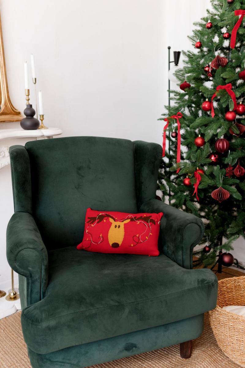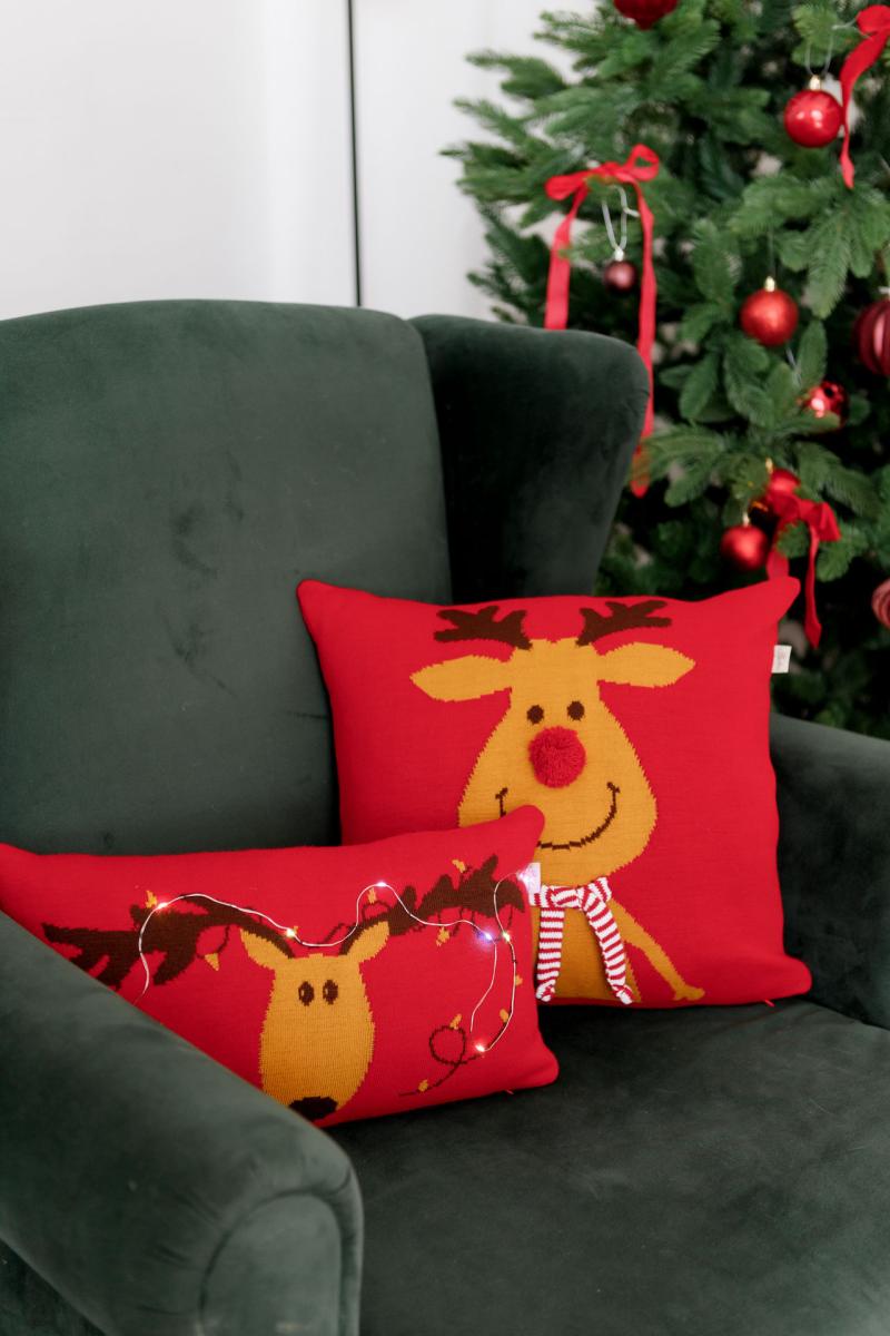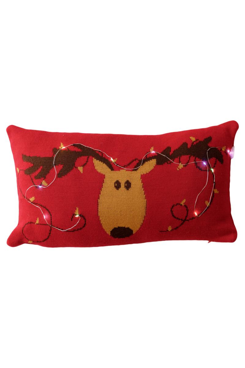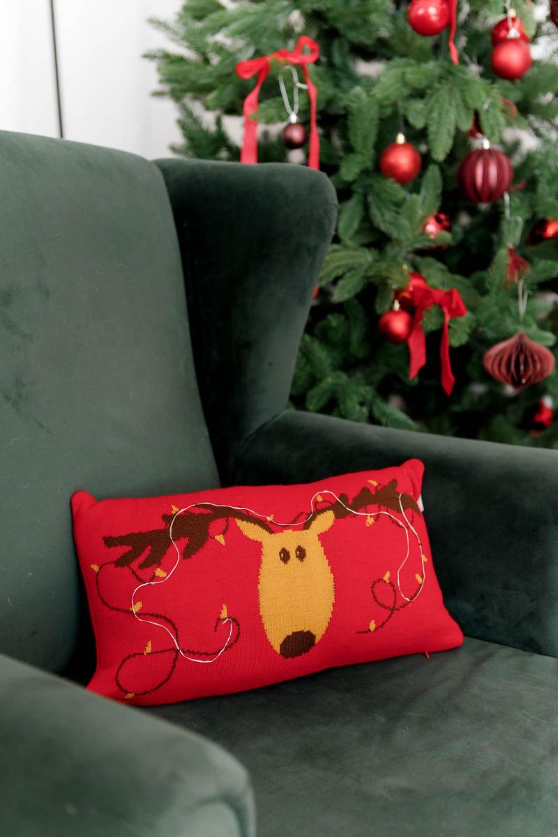 Декоративна подушка новорічна Олень з ліхтариками Яскрава, ошатна подушка з новорічним принтом та новорічними вогниками стане чудовим новорічним декором. Наволочка знімна на блискавці,... -