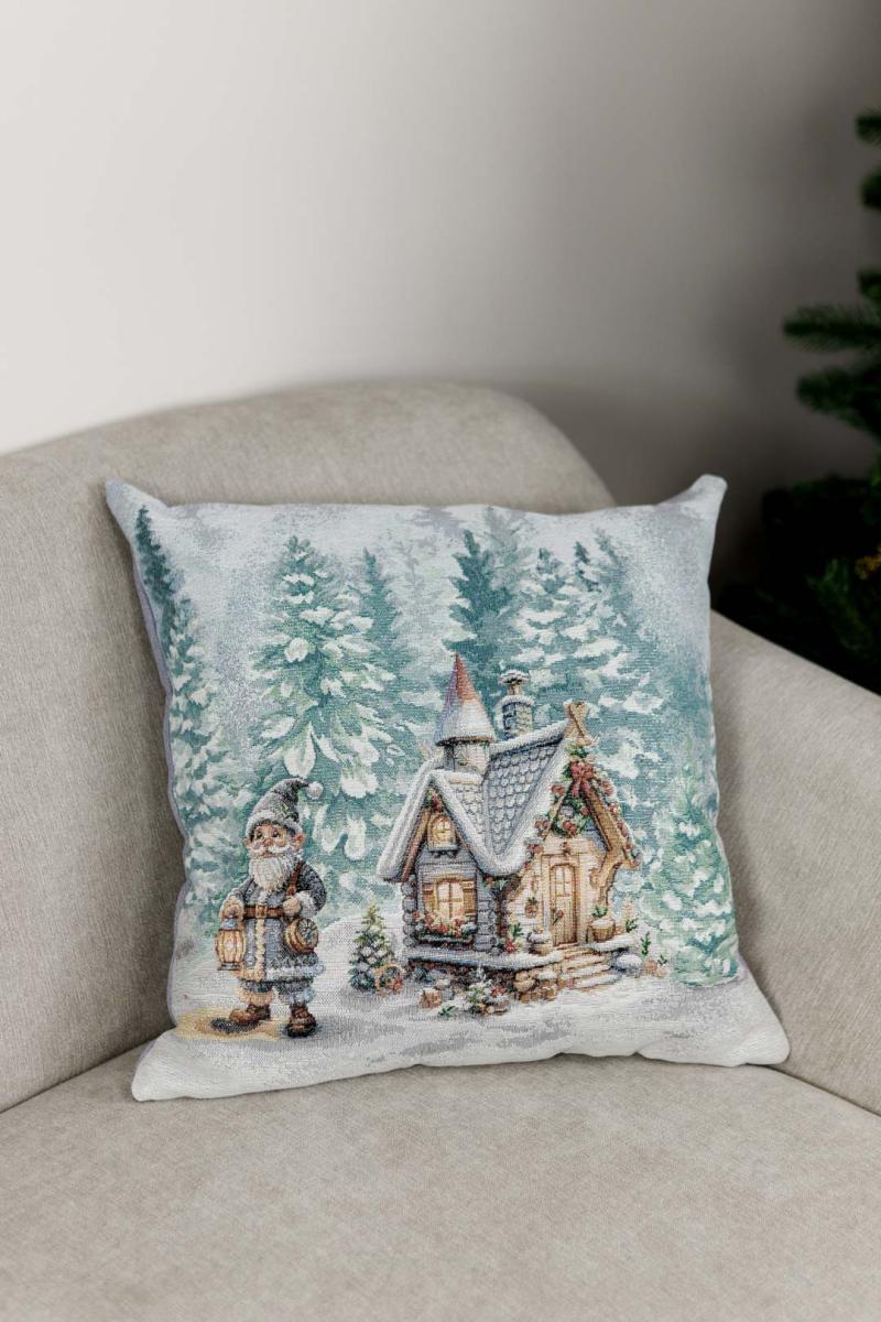 Подушка гобеленова новорічна Казкові гноми Будиночок