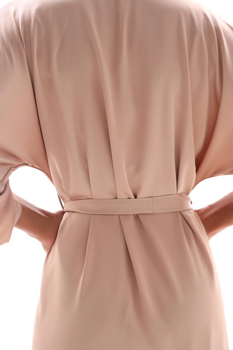 Халат жіночий кімоно шовковий – уособлення вишуканості та комфорту. Виготовлений з гладкого, приємного на дотик шовку, він ніжно огортає тіло, даруючи відчуття легкості та розкоші. Лаконічний дизайн без мережива підкреслює елегантність та універсальність виробу. Вільний крій у стилі кімоно забезпечує комфорт руху, а пояс на талії дозволяє ідеально підігнати силует. Ідеальний вибір для домашнього відпочинку або як стильний додаток до шовкової сорочки для сну -