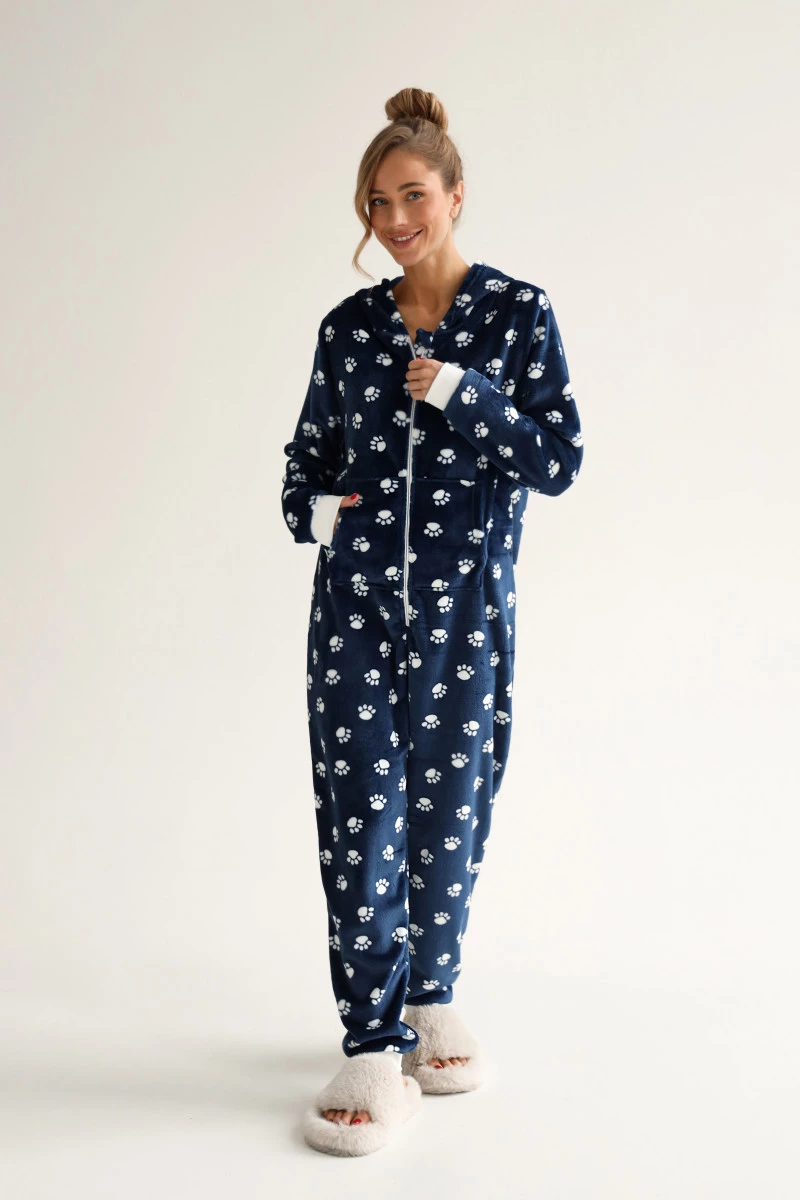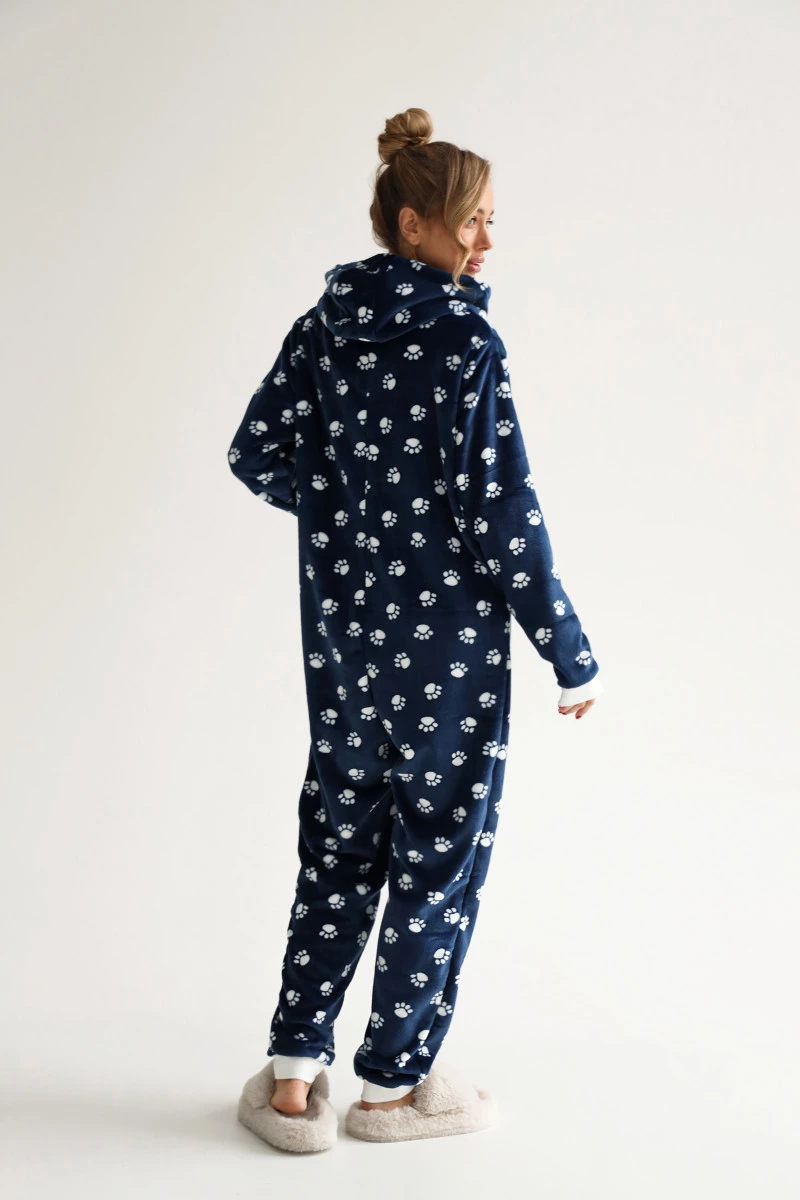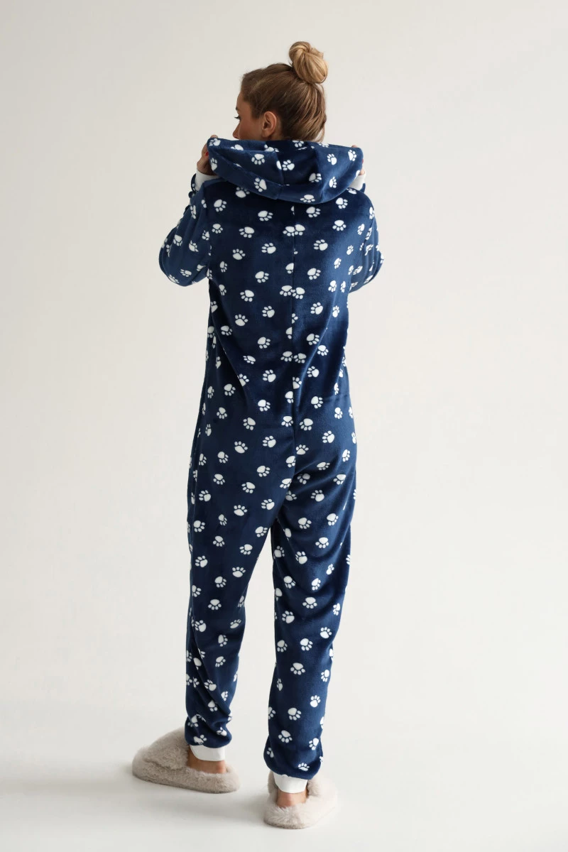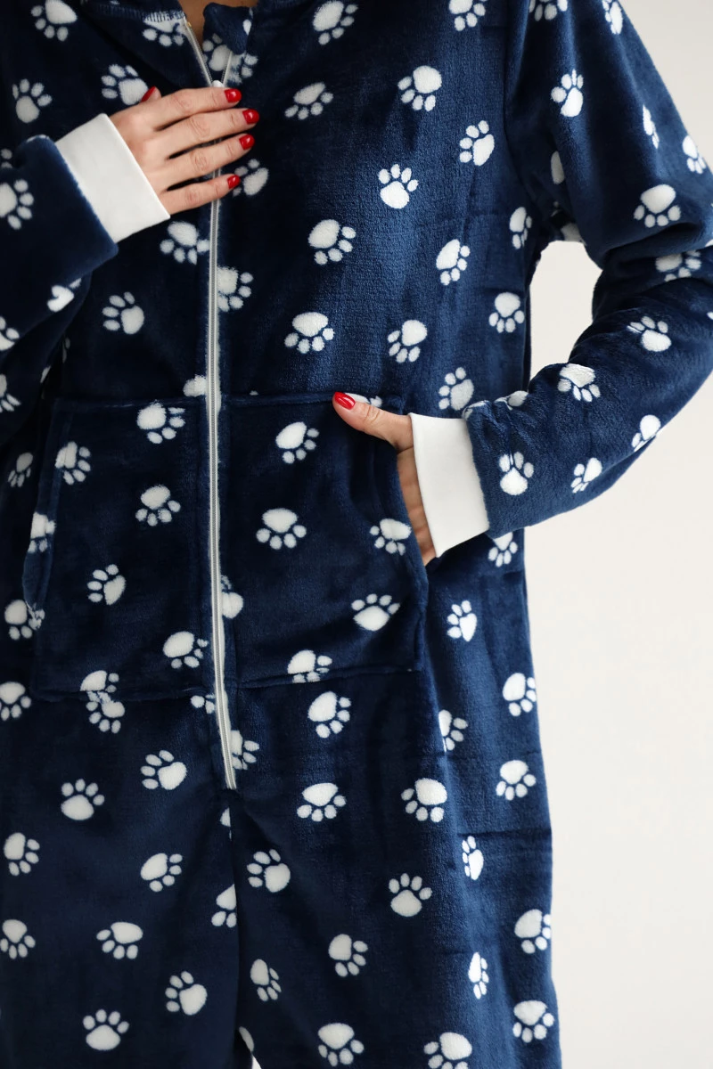 Комбінезон жіночий велсофт колір синій, принт лапка