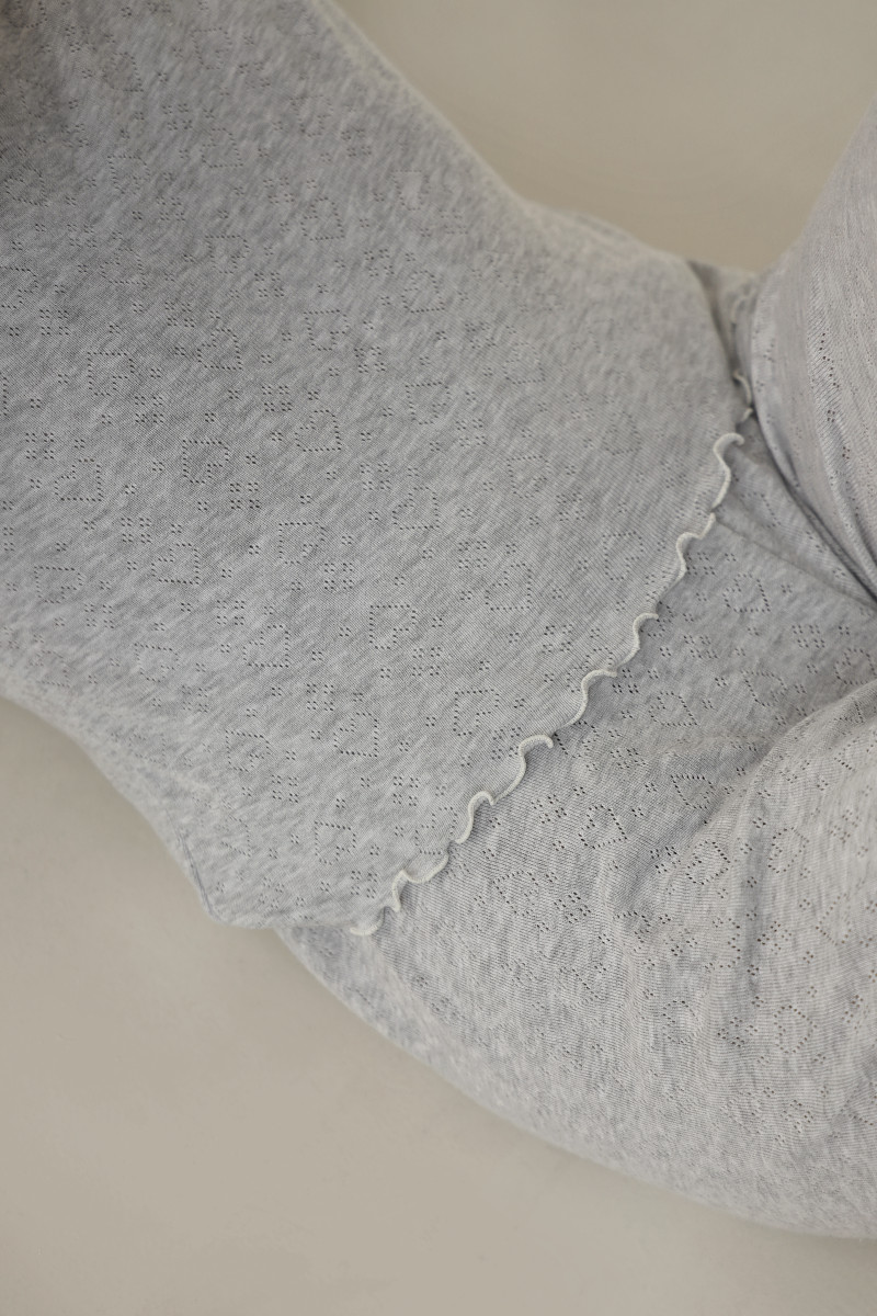 Лонгслів жіночий з ажурного трикотажу принт сердечко, сірий меланж