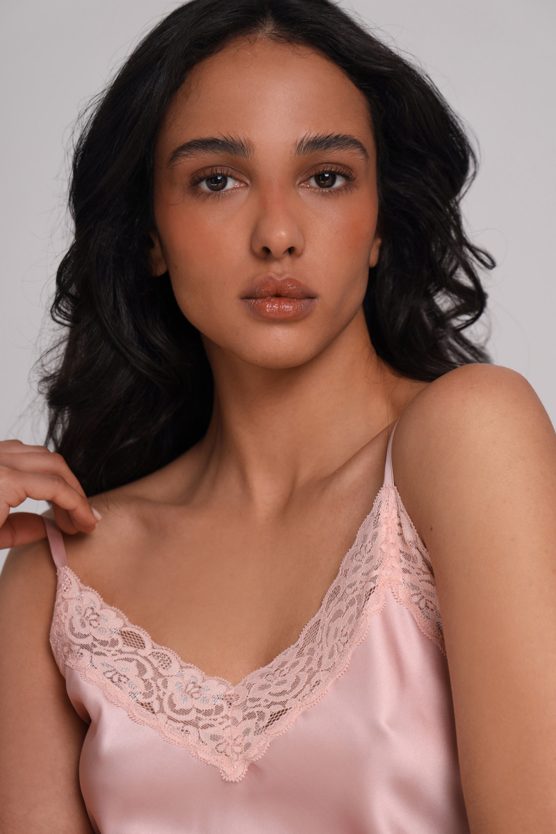 Набір шовковий жіночий топ і шорти з мереживом, рожевий