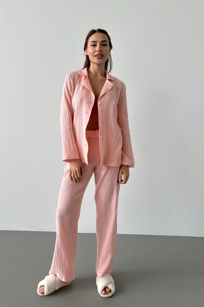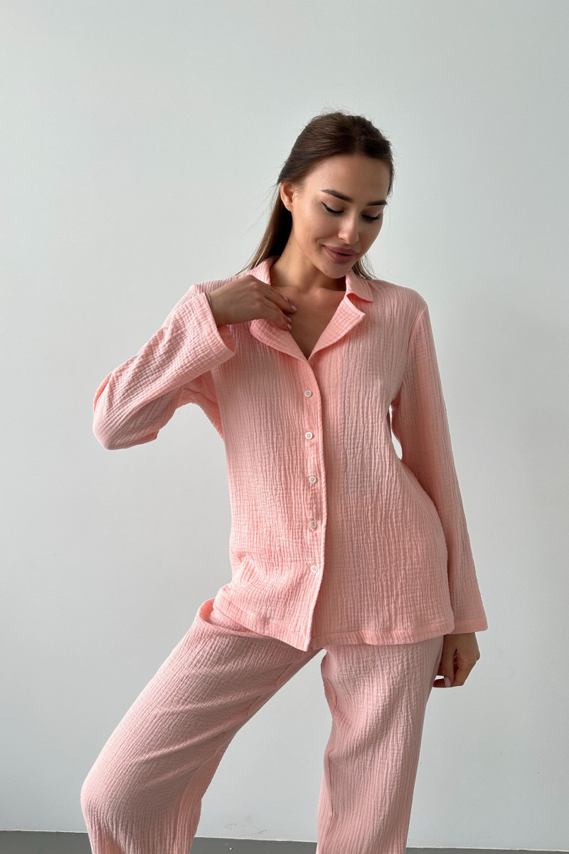 Піжама жіноча муслінова штани та кофта з довгим рукавом