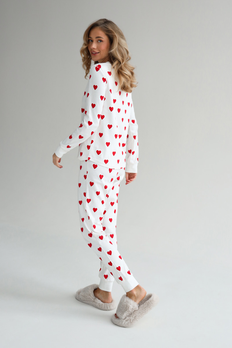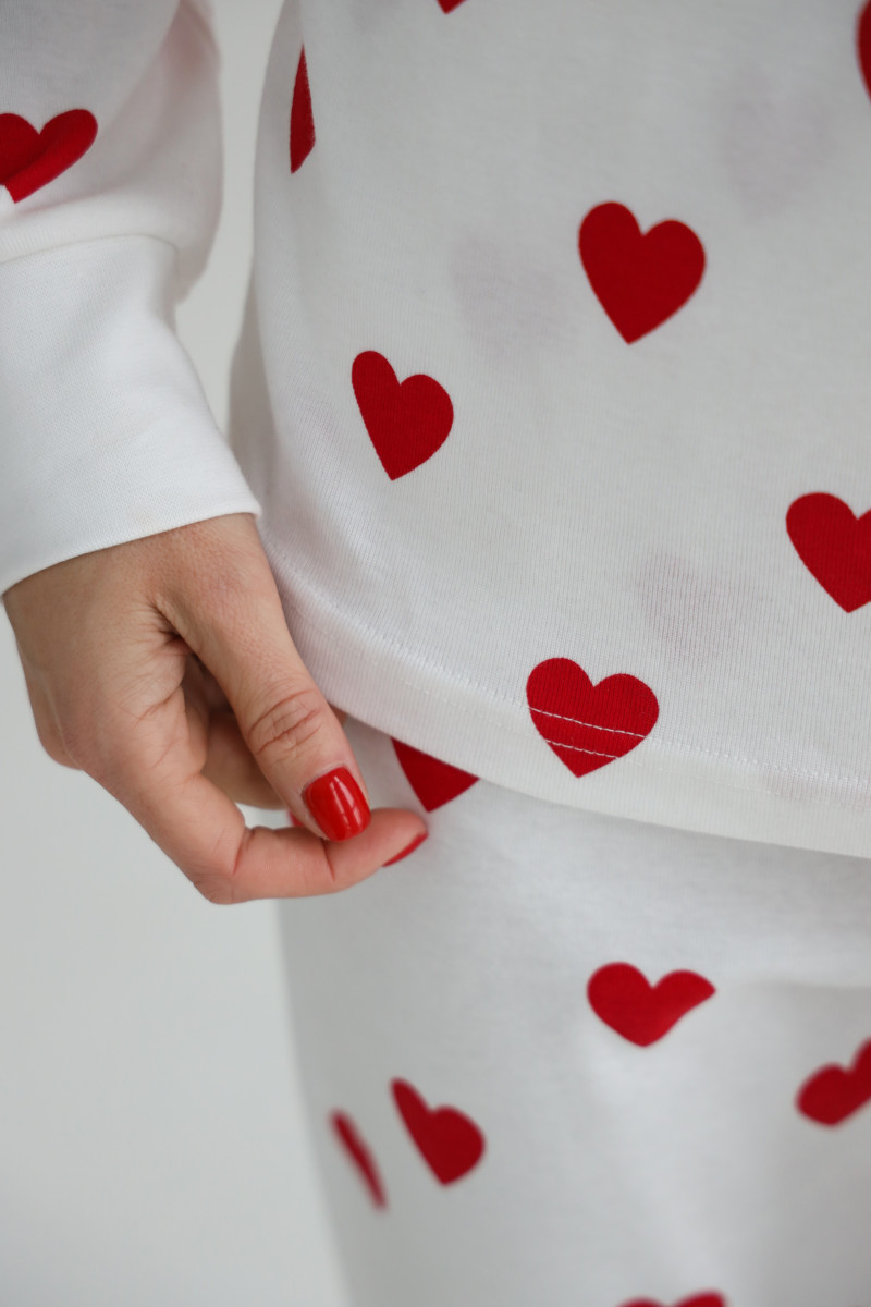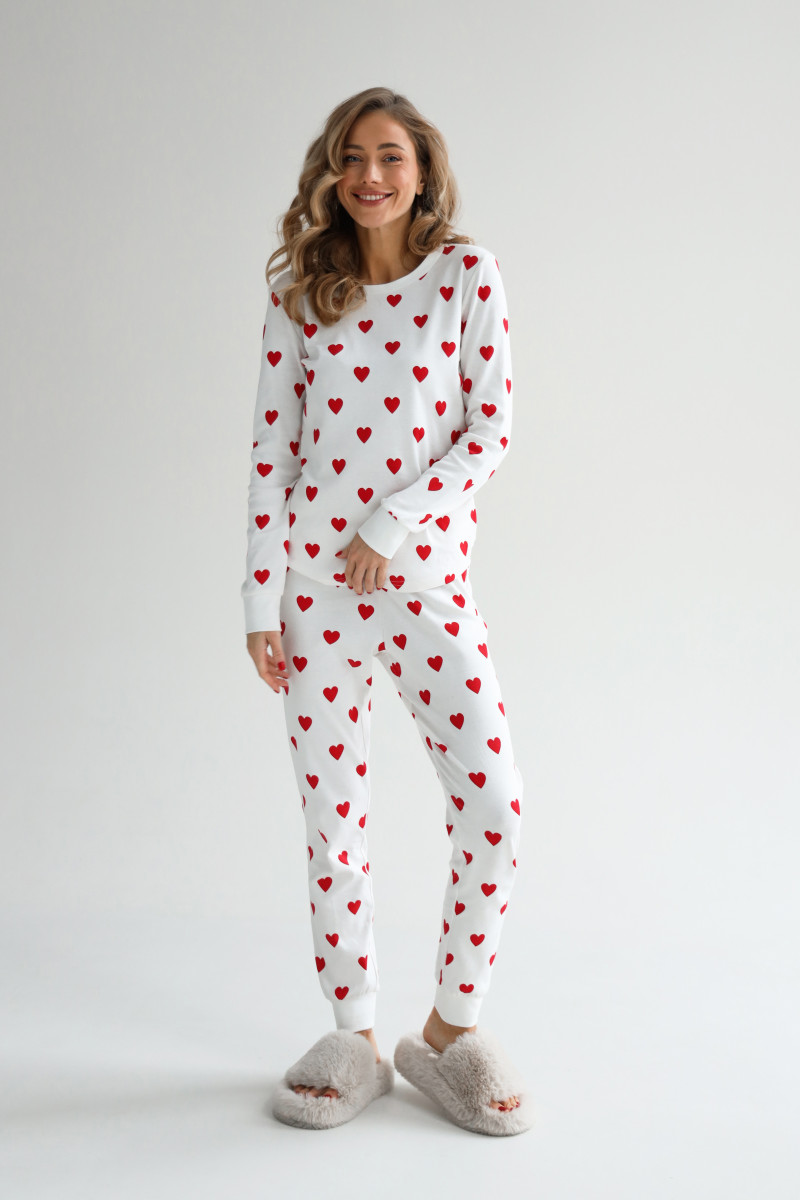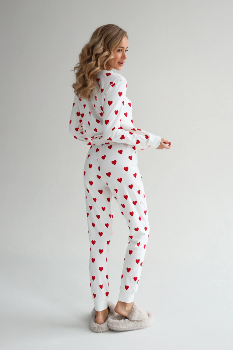 Прикрасьте свої вечори теплом та затишком у цій чудовій піжамі! М'яка 100% бавовна додасть Вам затишок та забезпечить приємний сон. Ця піжама - ідеальний варіант для затишних вечорів будинку. Піжама складається з штанів та блузки з довгим рукавом, що зробить Ваш образ ще чарівнішим. Завдяки високоякісним матеріалам, ця піжама даруватиме Вам тепло та комфорт щоночі. Ви заслуговуєте на краще, тому обирайте цю чудову піжаму з сердечками і насолоджуйтесь відпочинком!