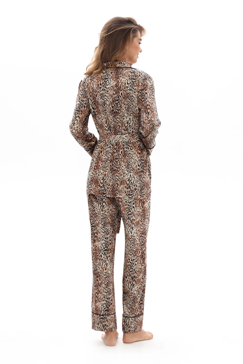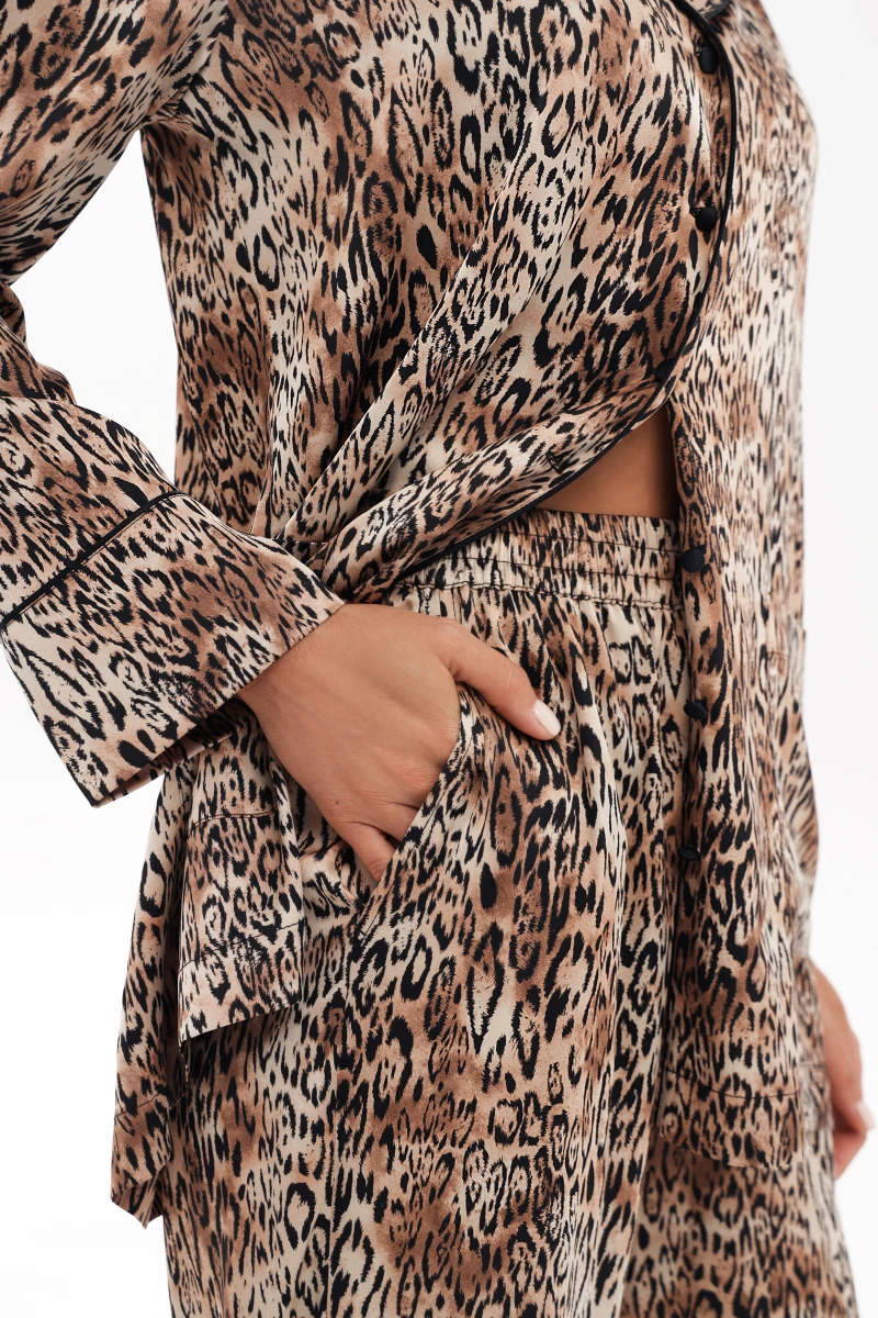 Піжамний комплект сорочка з довгим рукавом та штани, принт леопард