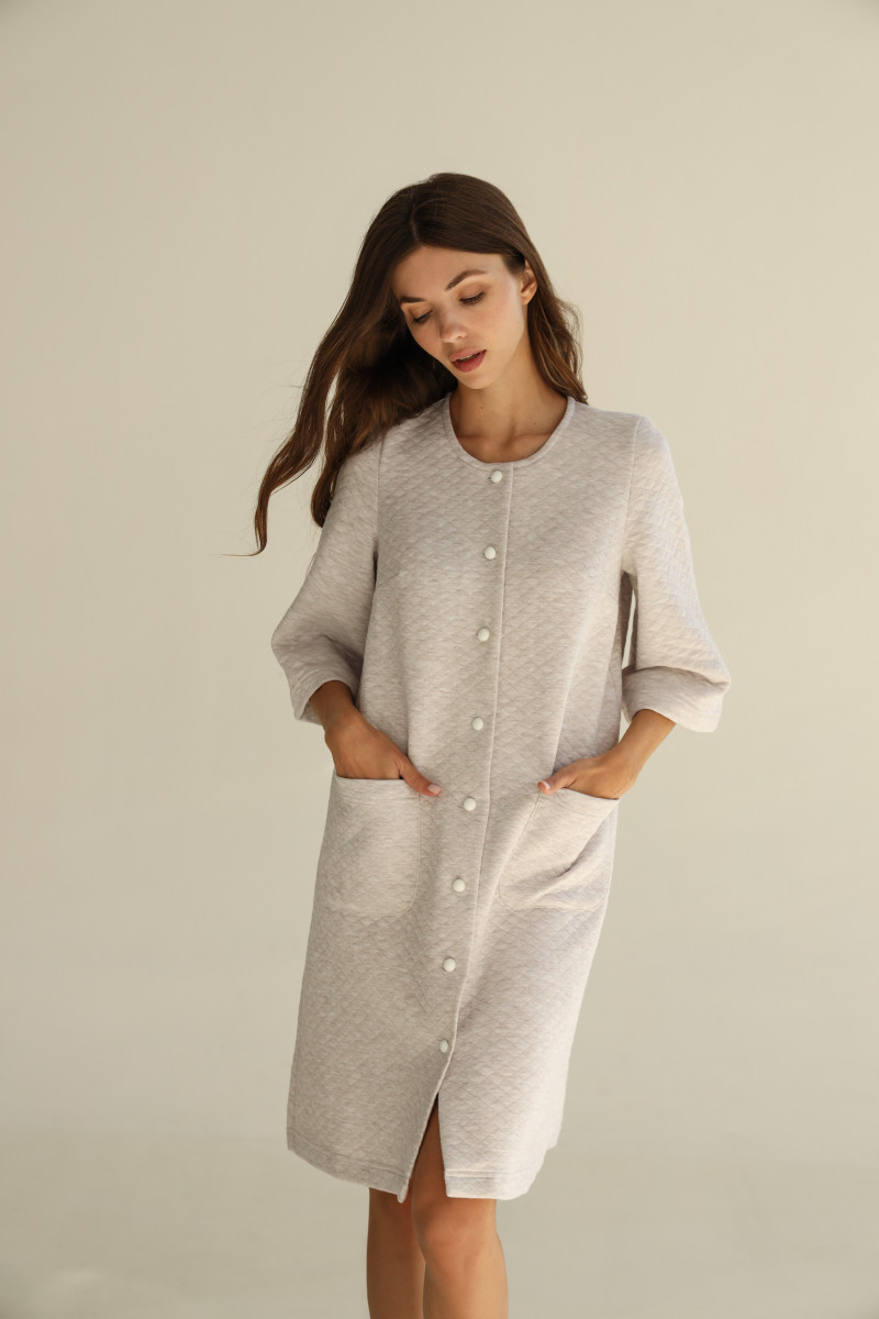 Домашній одяг повинен буду не тільки комфортним але і підкреслювати ваше відчуття стилю. Жіночий халат із стьобаного утепленого трикотажу – втілення комфорту та витонченості. Модель представлена з двома кишенями, прикрашеними маленькими світлими ґудзиками, які додають елегантність до вашого вигляду. Тканина трикотаж капітон (80% бавовна, 20% поліестер), Вафельна тканина натуральна, м'яка, дуже добре пропускає повітря та випаровує вологу. Вона дуже легка і не змінює колір при пранні та не сідає. Ці якості роблять вафельні халати найзручнішими у використанні. Доступний для замовлення в таких розмірах: s,m,l, xl. Той самий є комфортабельний, домашній варіант одягу. Вибір між кавовим та сірим меланжем дозволяє підкреслити ваш особистий стиль. Поглибіть відчуття спокою та вишуканості, обираючи цей стильний елемент гардеробу.