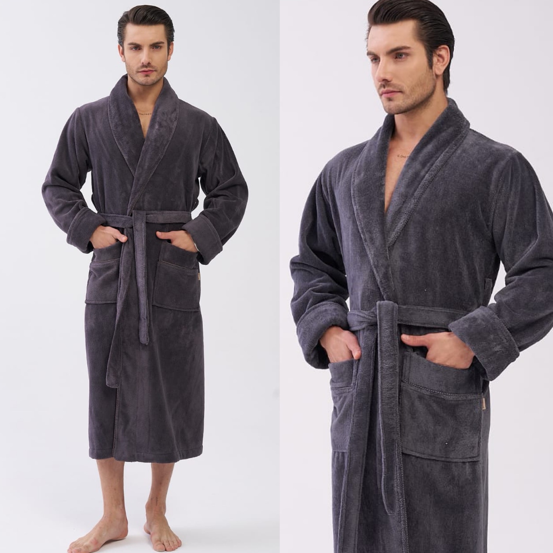 Халат чоловічий махровий Nusa колір антрацит - ідеальний вибір для комфорту та стилю. Цей халат поєднує в собі натуральні матеріали та унікальний дизайн. Склад матеріалу: 50% бамбук, 50% бавовна. Бамбукове волокно – екологічно чистий матеріал, гіпоалергенне та приємне на дотик. Бавовна – м'яка та універсальна.