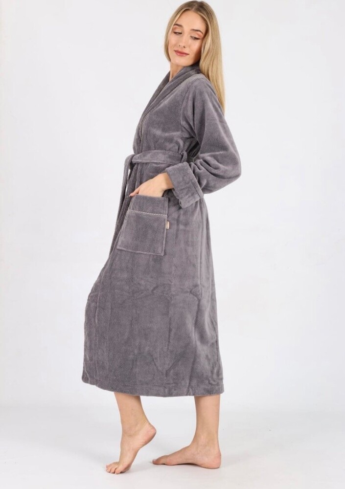 Жіночий довгий махровий халат Nusa 6895 - це комфортний та стильний одяг для використання вдома. Виготовлений з високоякісної м'якої махри, що дозволяє зберігати тепло та забезпечує високу зносостійкість. Халат має прямий крій та довгі рукави з манжетами, що забезпечує максимальний комфорт та зручність при носінні.