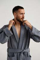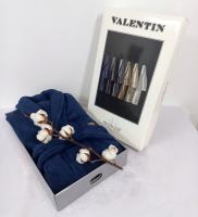 Елегантний чоловічий махровий халат Valentin виконаний зі 100% бавовни. Натуральна тканина відмінно вбирає вологу і не дратує шкіру. Довгий халат на запах із шалевим коміром, місткі накладні кишені. Д...