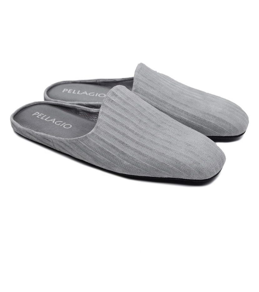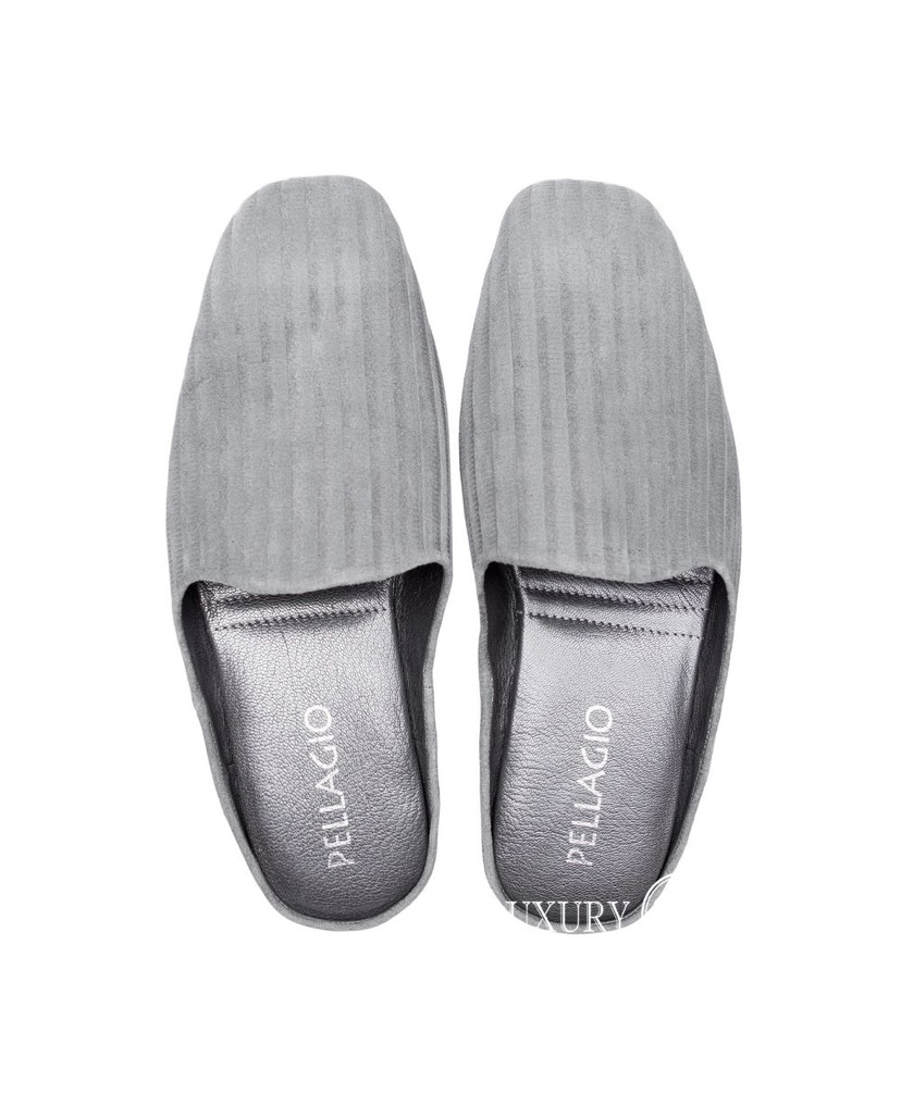 Паркетні тапочки з міцноі та фактурноі сіроі шкіри.Анатомічно правильна колодка робить ці капці дуже зручними.Тонка підошва доповнена гумовою накладкою:так взуття менше ковзає по гладкій поверхні.