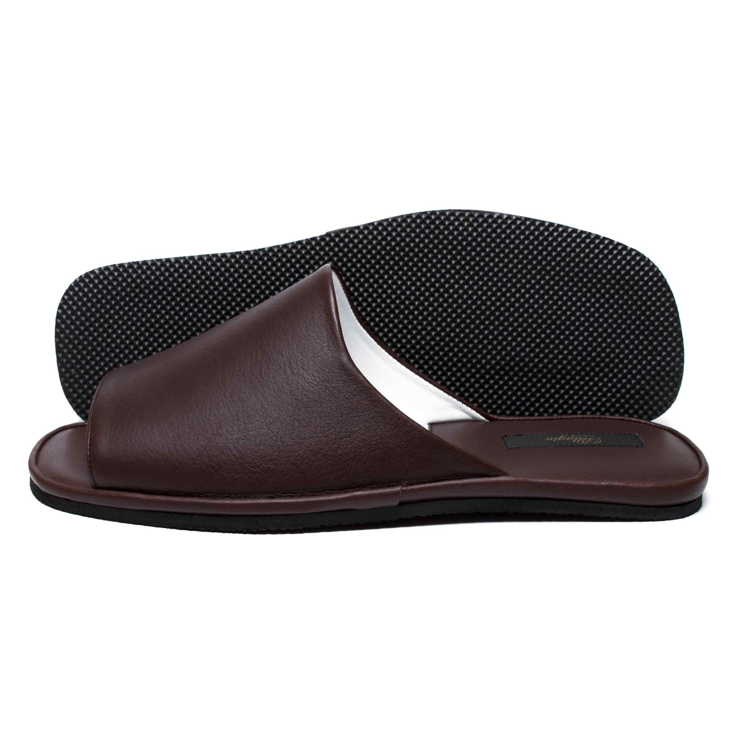 Класична модель відкритих чоловічих капців темно-коричневого кольору. Легка і безшумна підошва з EVA дозволить вийти в капцях навіть на відкриту терасу.