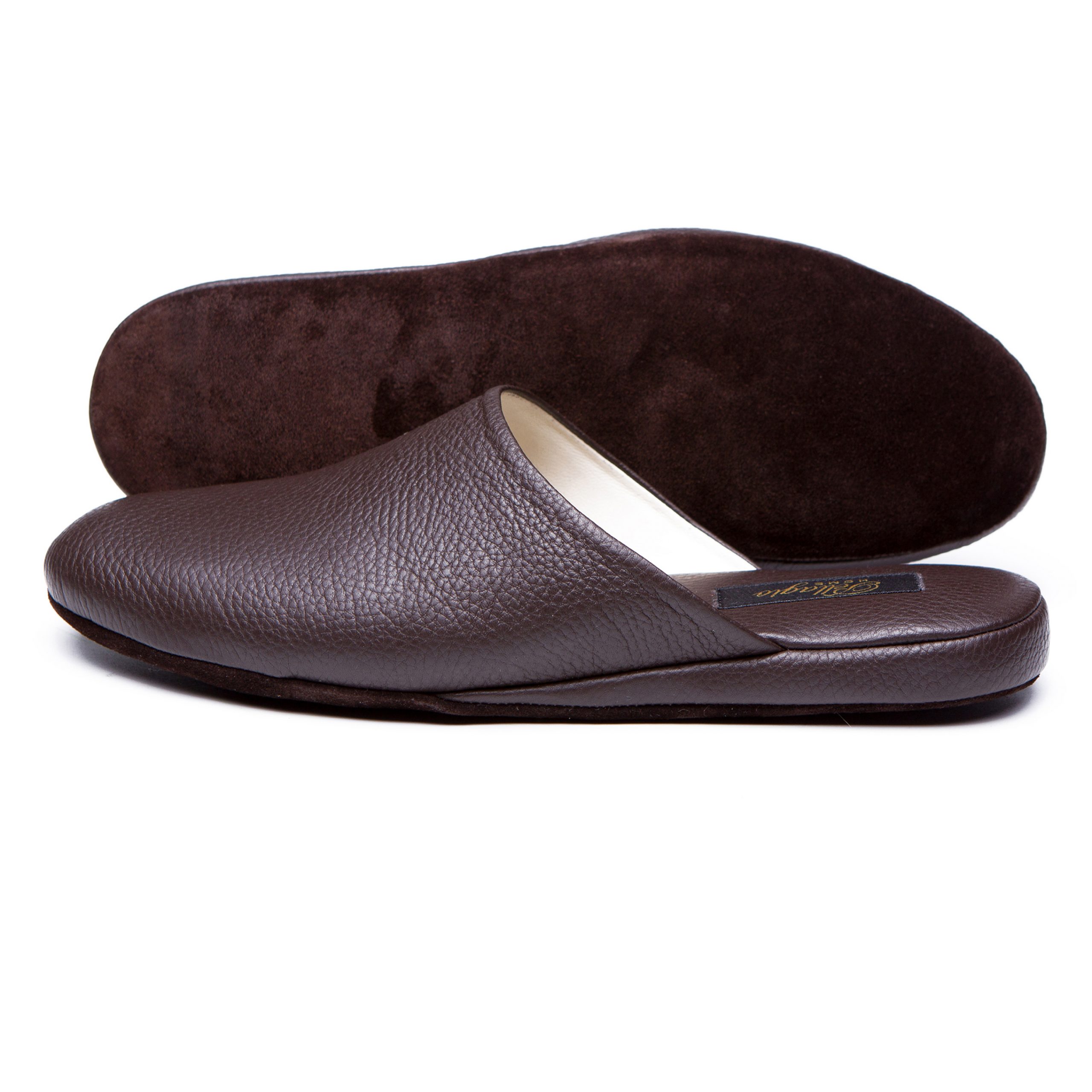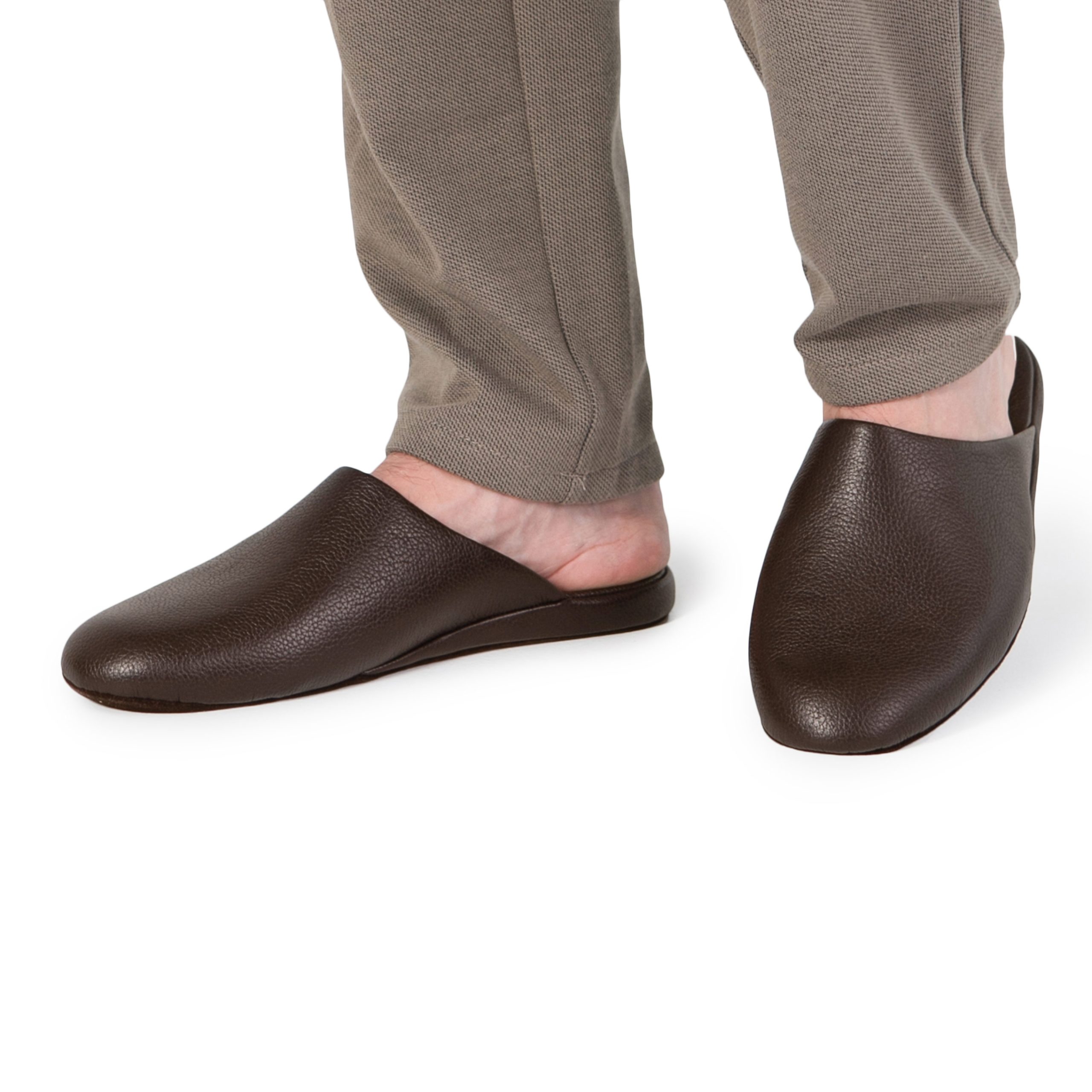 Паркетні капці виконані з м’якої та еластичної шкіри коричневого кольору. Анатомічна форма допомагає стопі залишатися в природньому положенні, а гнучка підошва з міцної замші не ковзає на гладких поверхнях і забезпечує ногам комфорт, не обтяжуючи взуття.