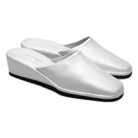 Елегантні домашні закриті тапочки на зручній стійкій танкетці перламутрового кольору. У цій моделі підібрана оптимальна висота танкетки, в якій ногам комфортно протягом усього дня, в той же час вона р...