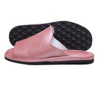 Класична модель відкритих жіночих капців з м’якої перламутрової шкіри рожевого кольору. Дана модель капців має фігурну союзку, завдяки якій впевненно тримається на стопі. Легка і безшумна підошва з EV...