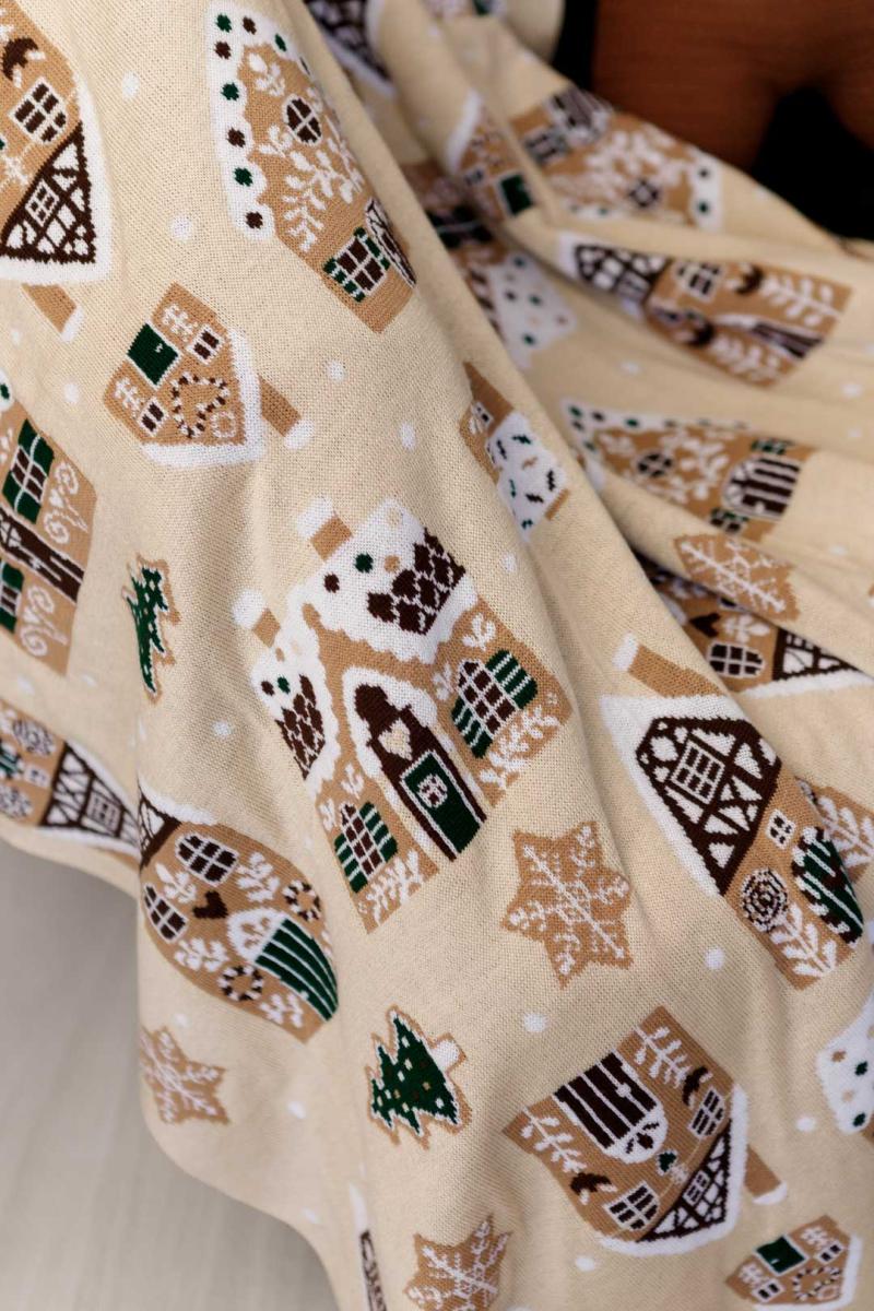 Новорічний плед в'язаний Імбирні будиночки