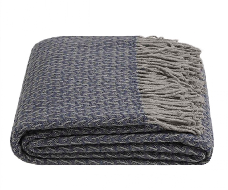 Напіввовняний плед Бамбук в синьому кольорі - це стильне покривало, яке може застосовуватися як вдома для декорування інтер'єру, так і на вулиці - як покривало для пікніку або накидки. Серед незаперечних переваг рішення замовити напіввовняної плед: • Відмінна теплоізоляція. Волокна тварин є кращим теплоізолятором. Вони швидко зігрівають, при цьому тепло акумулюється на весь час відпочинку. • Хороша повітропроникність. Ця властивість дозволяє Вам зігріватися навіть у люті морози і рятуватися від спеки влітку. • вологопоглинаючі властивості. Навіть при поглинанні води, волокна залишаються сухими. Ця характеристика забезпечує максимальний комфорт в застосуванні. Серед інших переваг можна виділити естетичність, невибагливість у догляді, міцність, тривалий термін служби. Чому варто придбати плед від бренду Lanavitta? У нашій компанії Ви зможете замовити теплий якісний плед, який відрізняється унікальними технічними характеристиками.