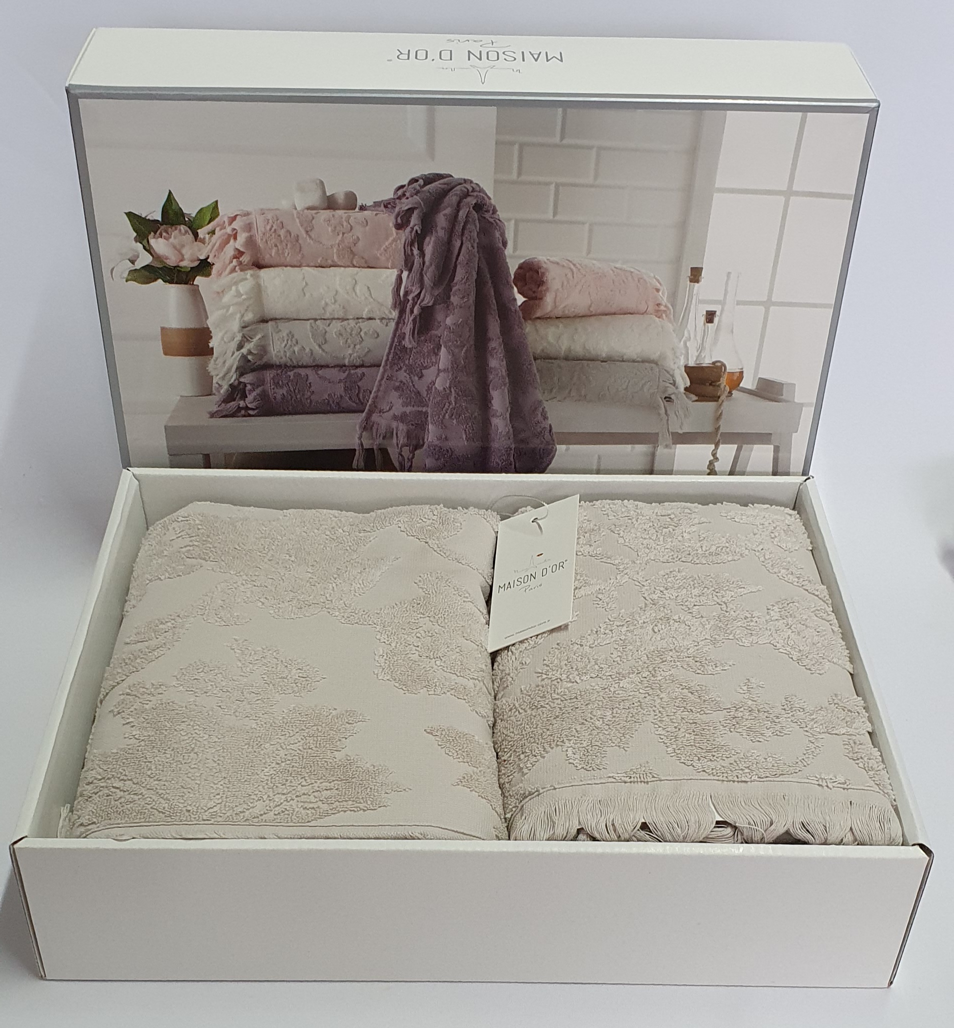 Бренд MAISON DOR Тканина 100% бавовна Країна виробник Туреччина Країна реестрації бренду Туреччина Колір бежевий Кількість у наборі, шт 2 Пол Жіночі Комплектация Набор Склад Махра Матеріал Махрові Розмір 50х100, 85x150 -