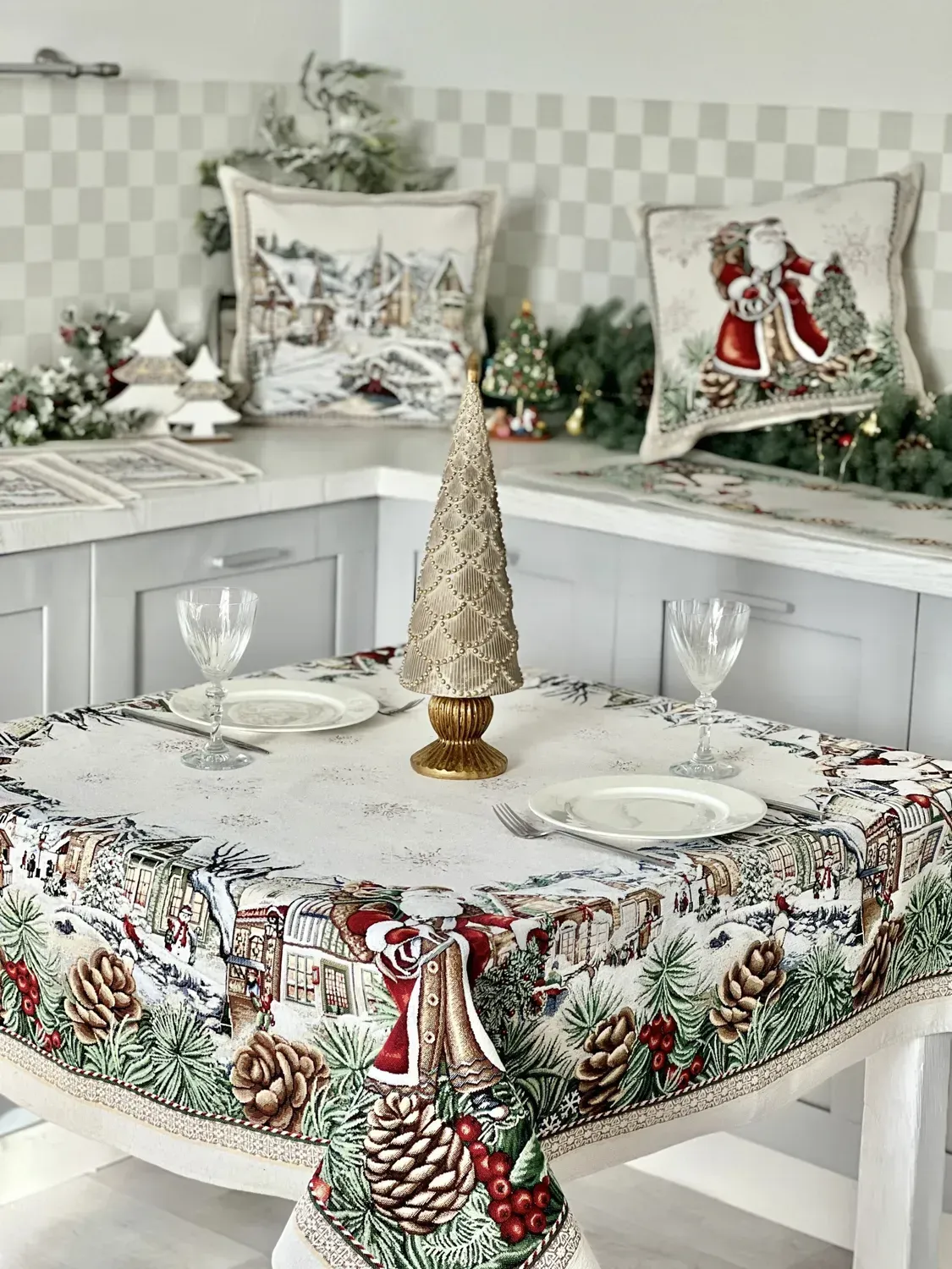 newХітХарактеристики Колір: бірюзовий, блакитний, молочний Склад: 60% бавовна, 40% поліестер (гобелен) Виробник: ПРОВАНС Розмір: 95x100cм Дизайн та декор скатертин: новорічн...