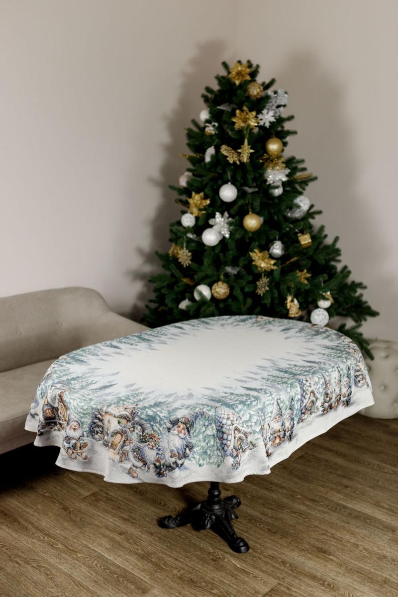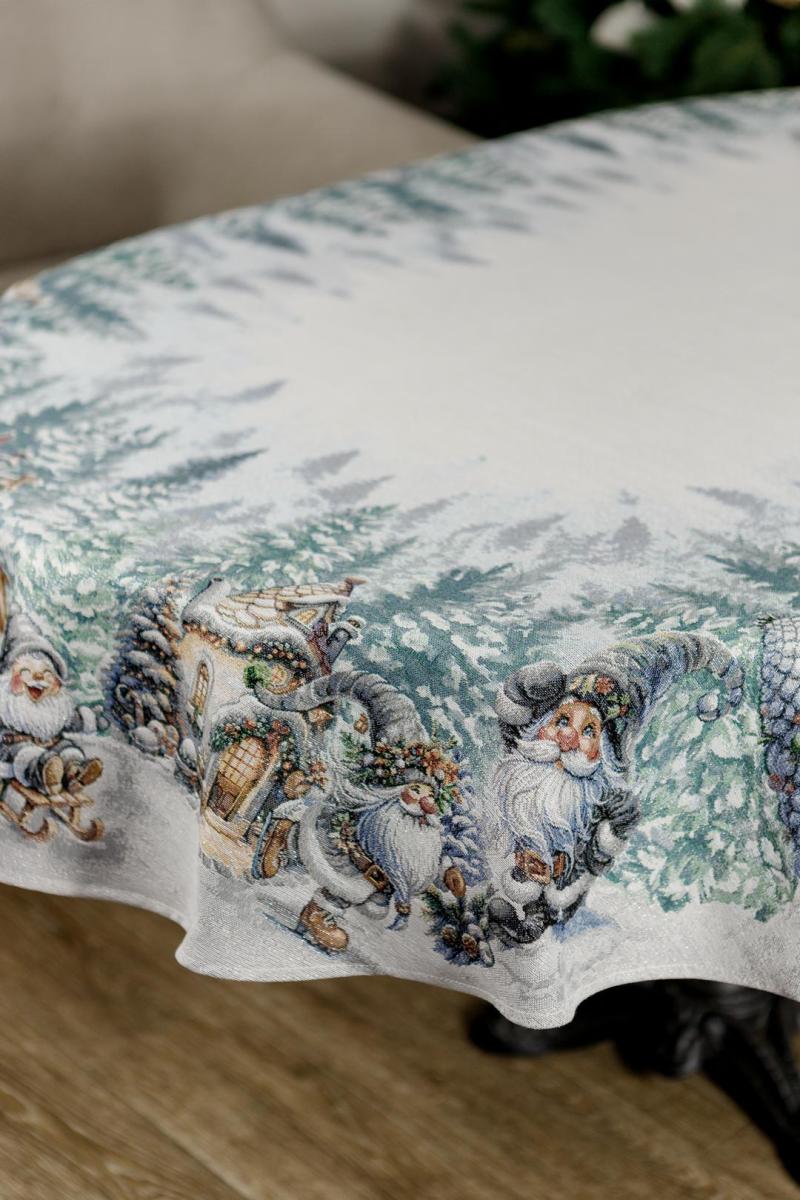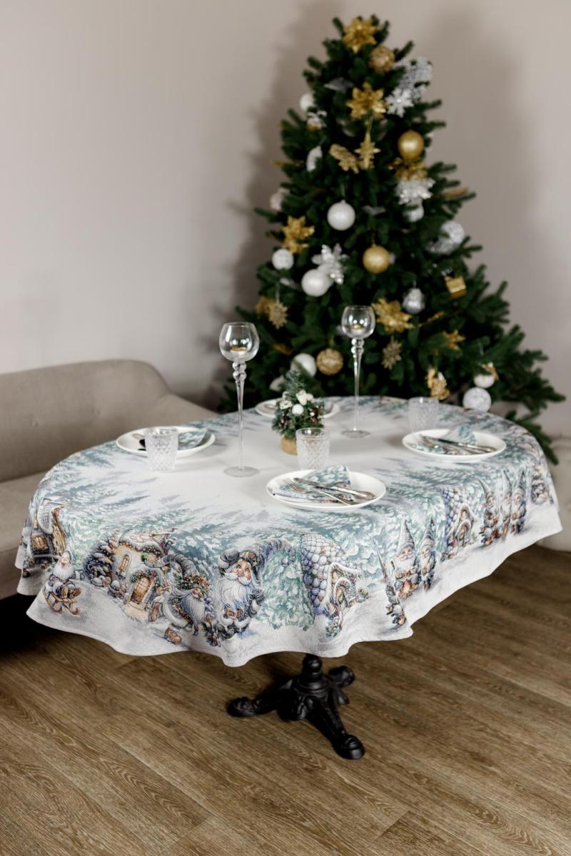 Новорічна овальна гобеленова скатертина Казкові гноми