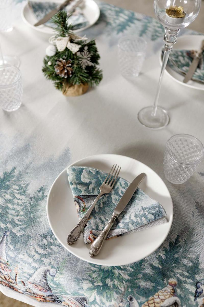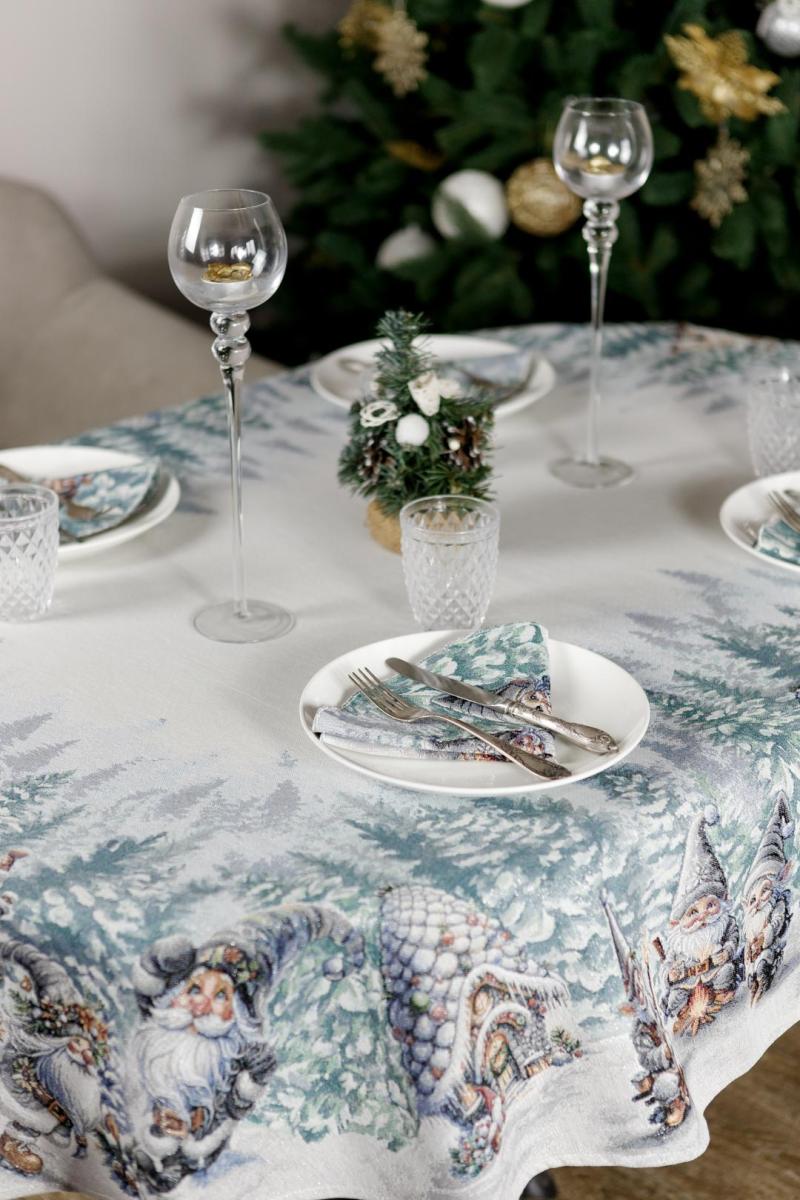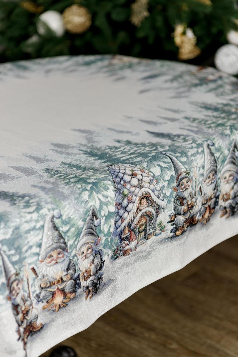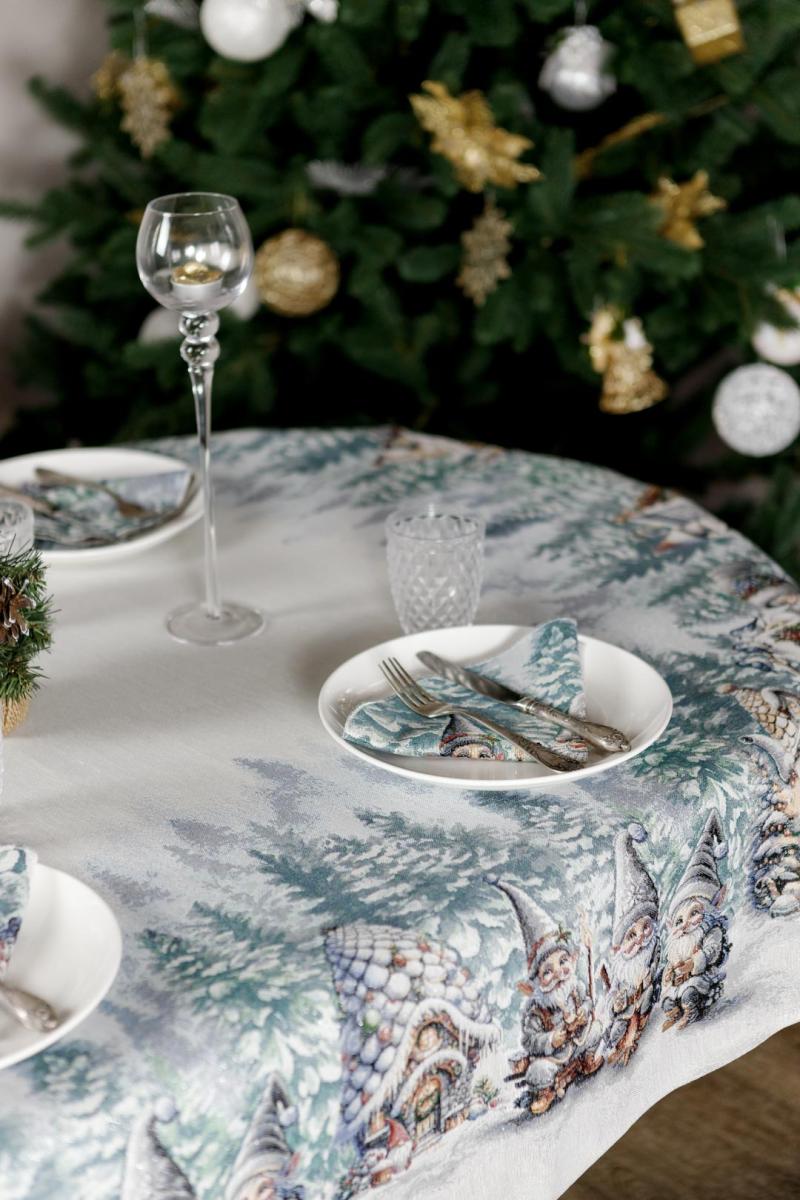 Купити новорічну овальну гобеленову скатертину на стіл Казкові гноми Скатертина прикрасить вітальню або кухню. Це стильний подарунок сім'ї, друзям, родичам та колегам на честь чарівного... -