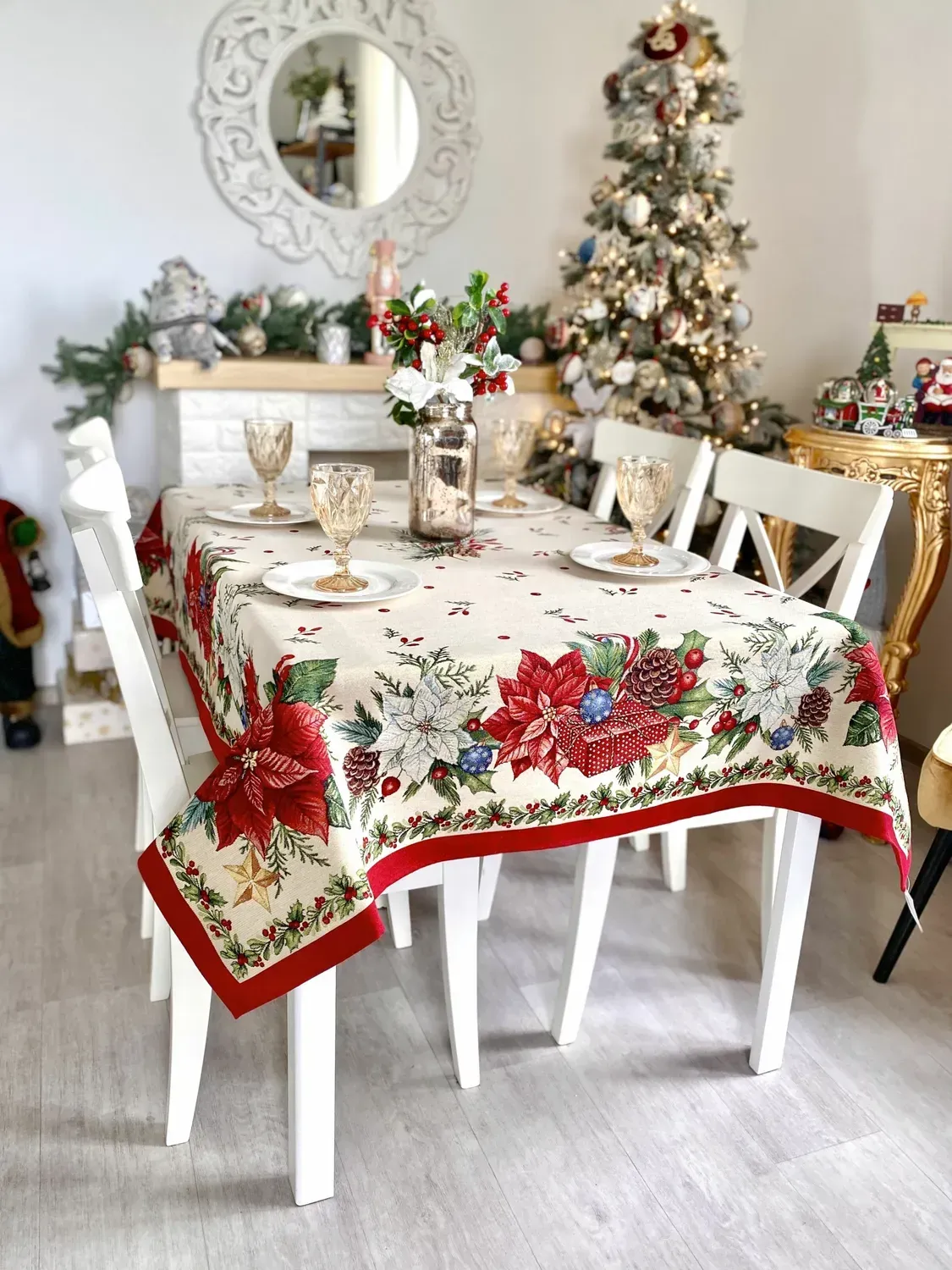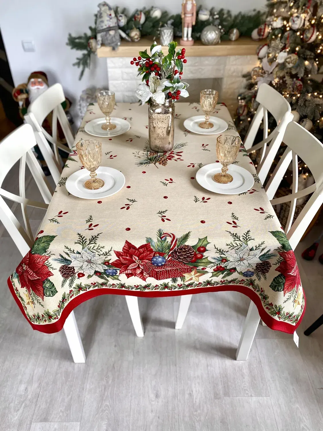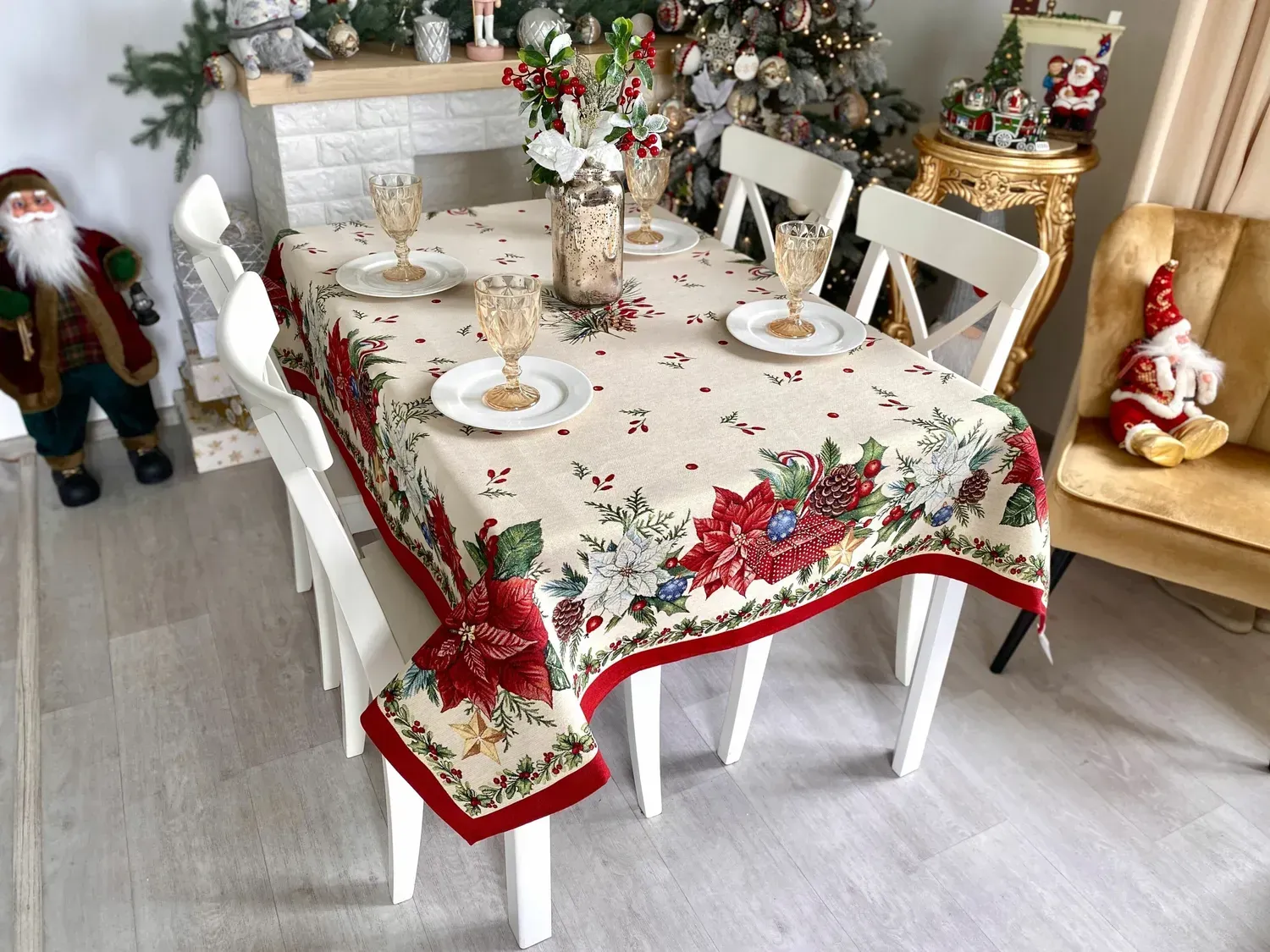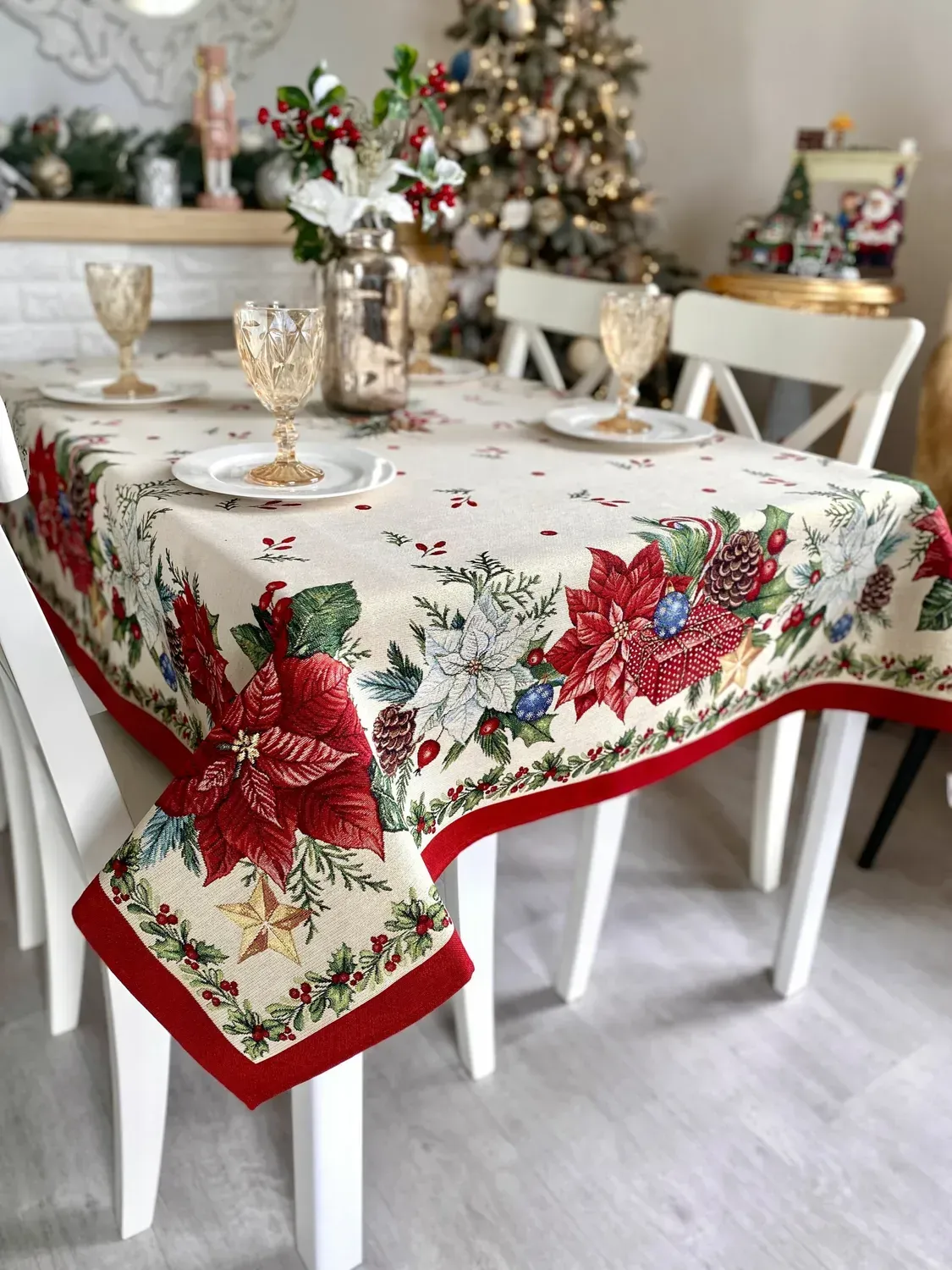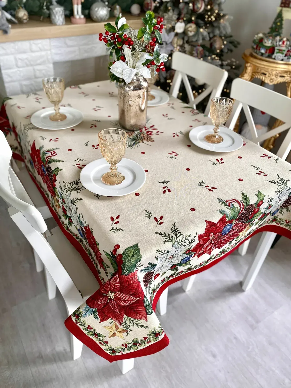 Гобеленова скатертина створить у Вашій домівці атмосферу свята і затишку у будь-яку пору року. Наші гобеленові вироби відрізняються незмінною якістю та довговічністю, вони не вимагають особливого догляду. Вони практичні у використанні, не втрачають кольору після прання, з них без зусиль відпираються плями і їх легко прасувати. -