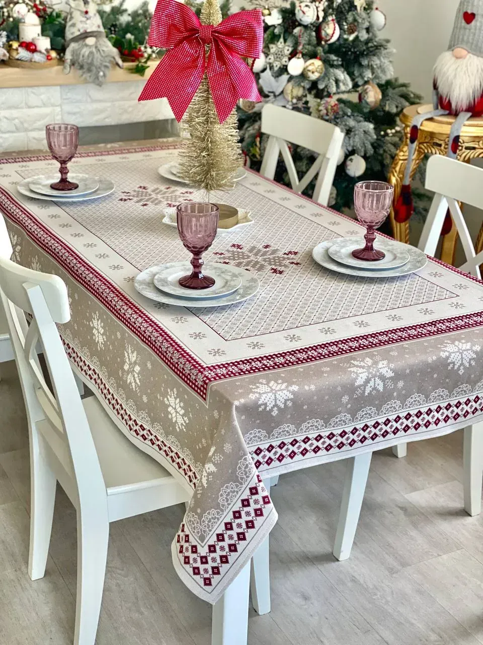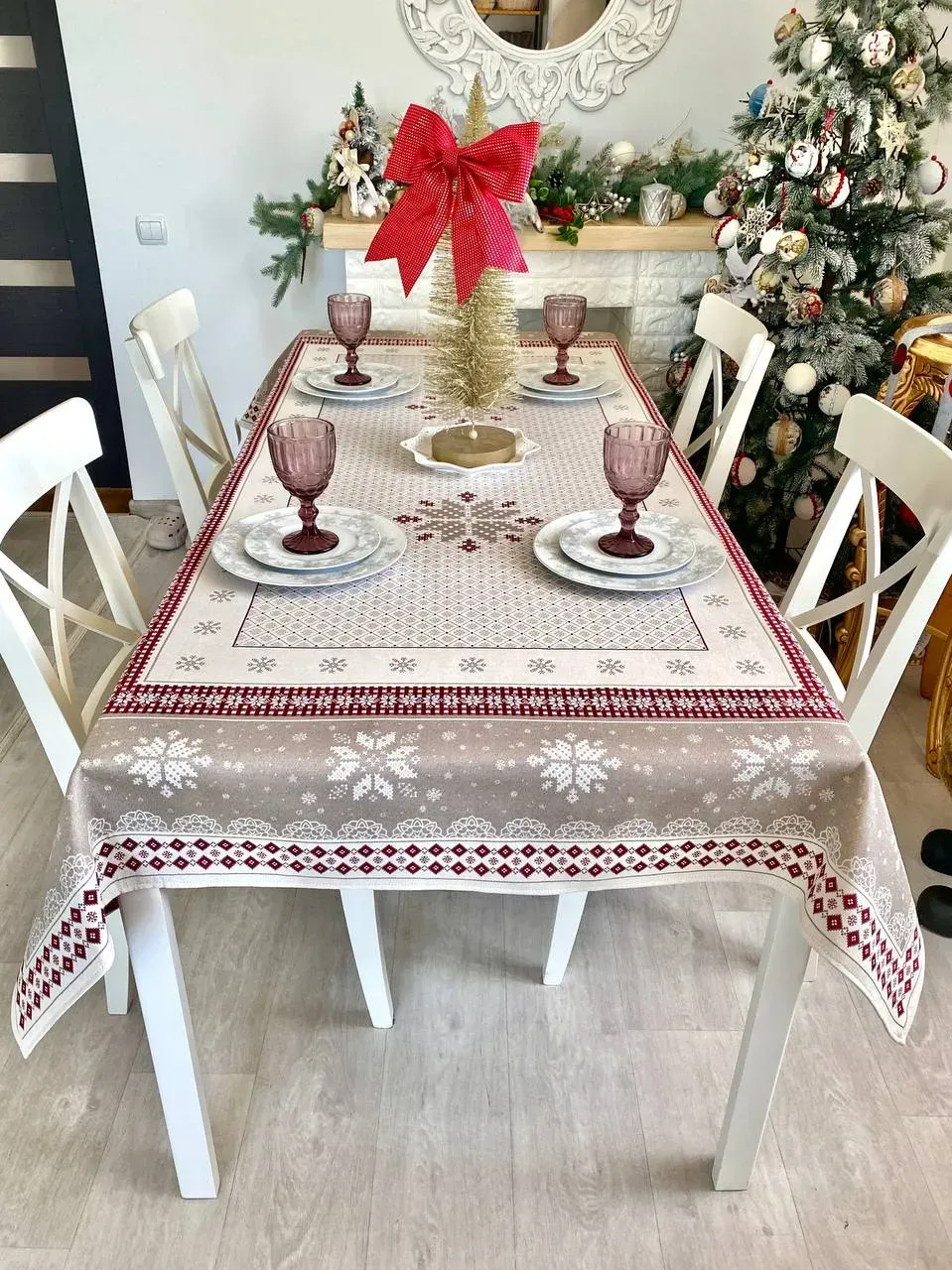 Артикул NORDICA TORTORA-220 Розмір 137x220 Форма Прямокутна Розділ Скатертини Дизайн Новорічний Вид Без люрексу Колір Бежевий Склад тканини 38% бавовна, 37% поліестер, 25% акрил