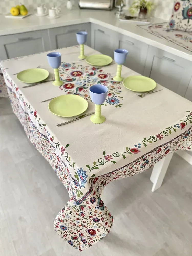 Гобеленова скатертина створить у Вашій домівці атмосферу свята і затишку у будь-яку пору року. Наші гобеленові вироби відрізняються незмінною якістю та довговічністю, вони не вимагають особливого догляду. Вони практичні у використанні, не втрачають кольору після прання, з них без зусиль відпираються плями і їх легко прасувати. -